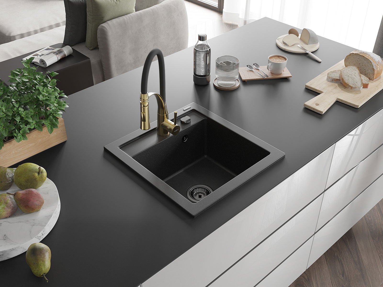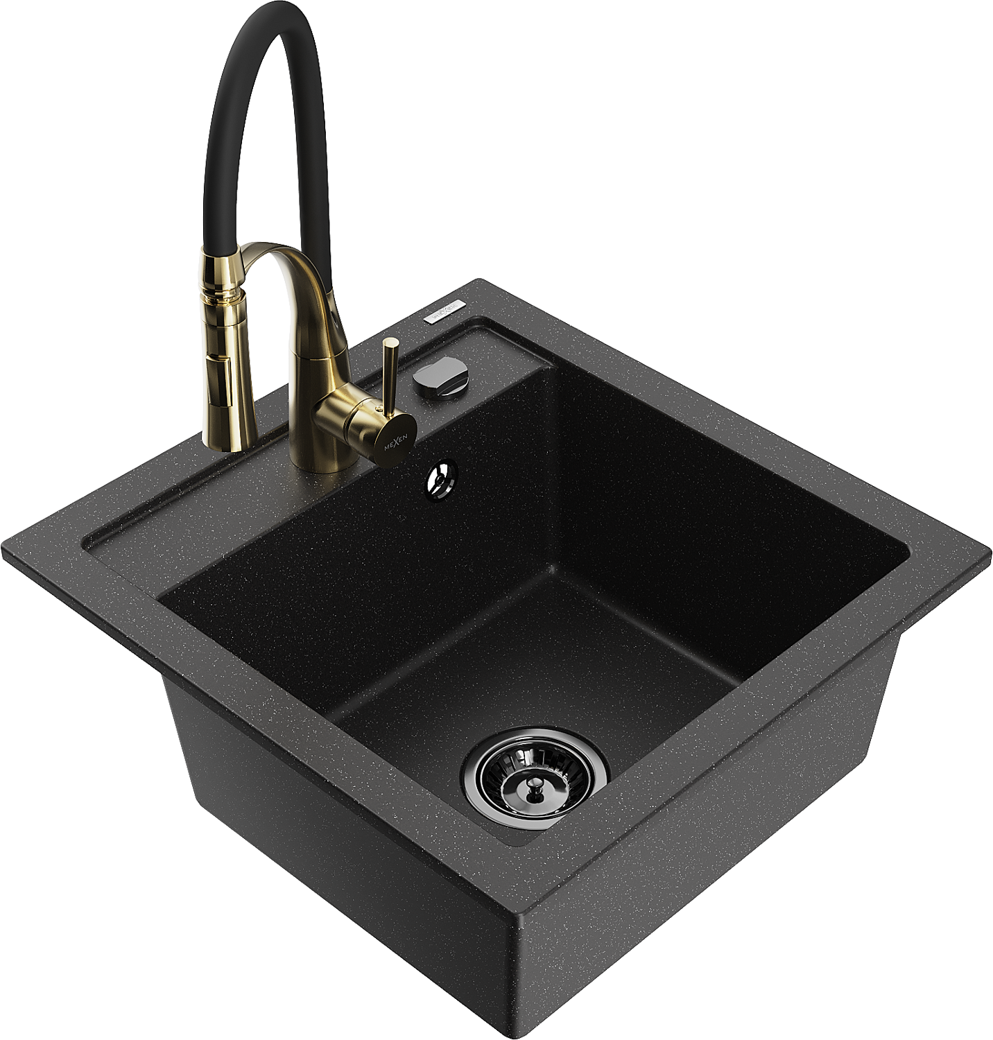 Mexen Vito vienos plautuvės granito kriauklė su virtuviniu maišytuvu Aster, juoda/sidabrinis metalikas - 6503-73-73450-57-B
