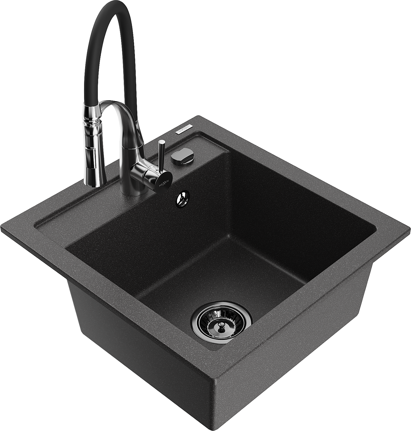 Mexen Vito vienos dalies granitinė virtuvės kriauklė su Aster maišytuvu, juoda taškyta - 6503-76-73450-07-B