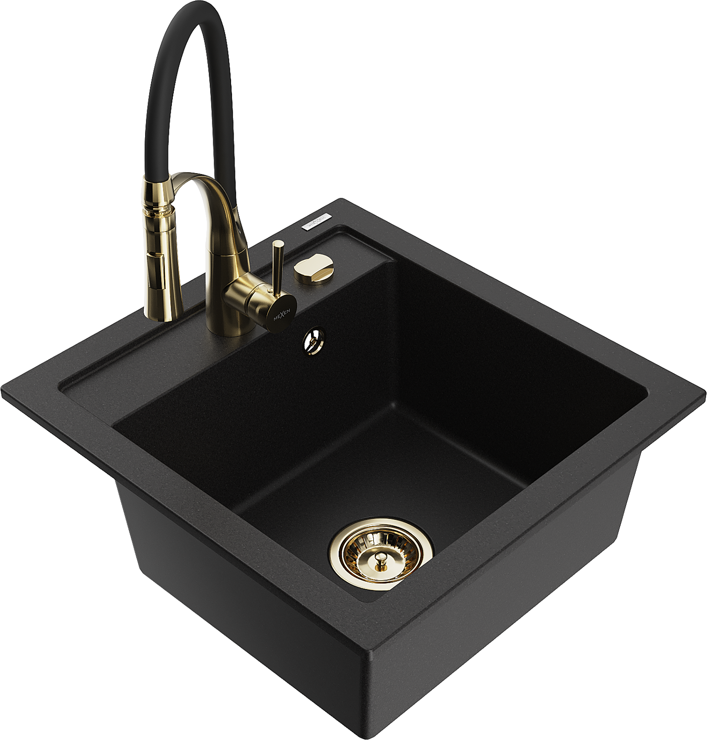 Mexen Vito granitinė virtuvės plautuvė 1 kameru su virtuviniu maišytuvu Aster, juoda - 6503-77-73450-57-G