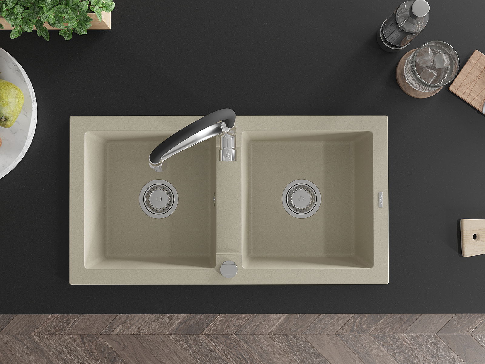 Kriauklės paviršius yra atsparūs dėmėms ir spalvos pasikeitimui, dėl kurio lengva valyti ir ilgą laiką išlaikyti savo spalvą. Estetinis ir praktiškai papildantis kiekvieną virtuvę.