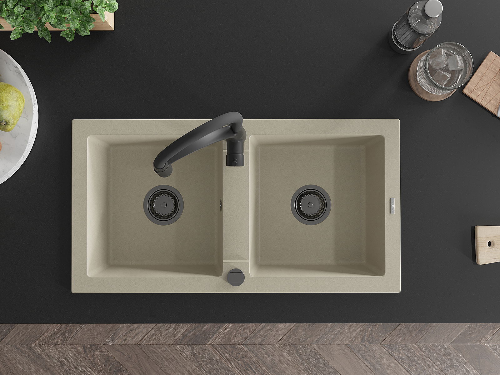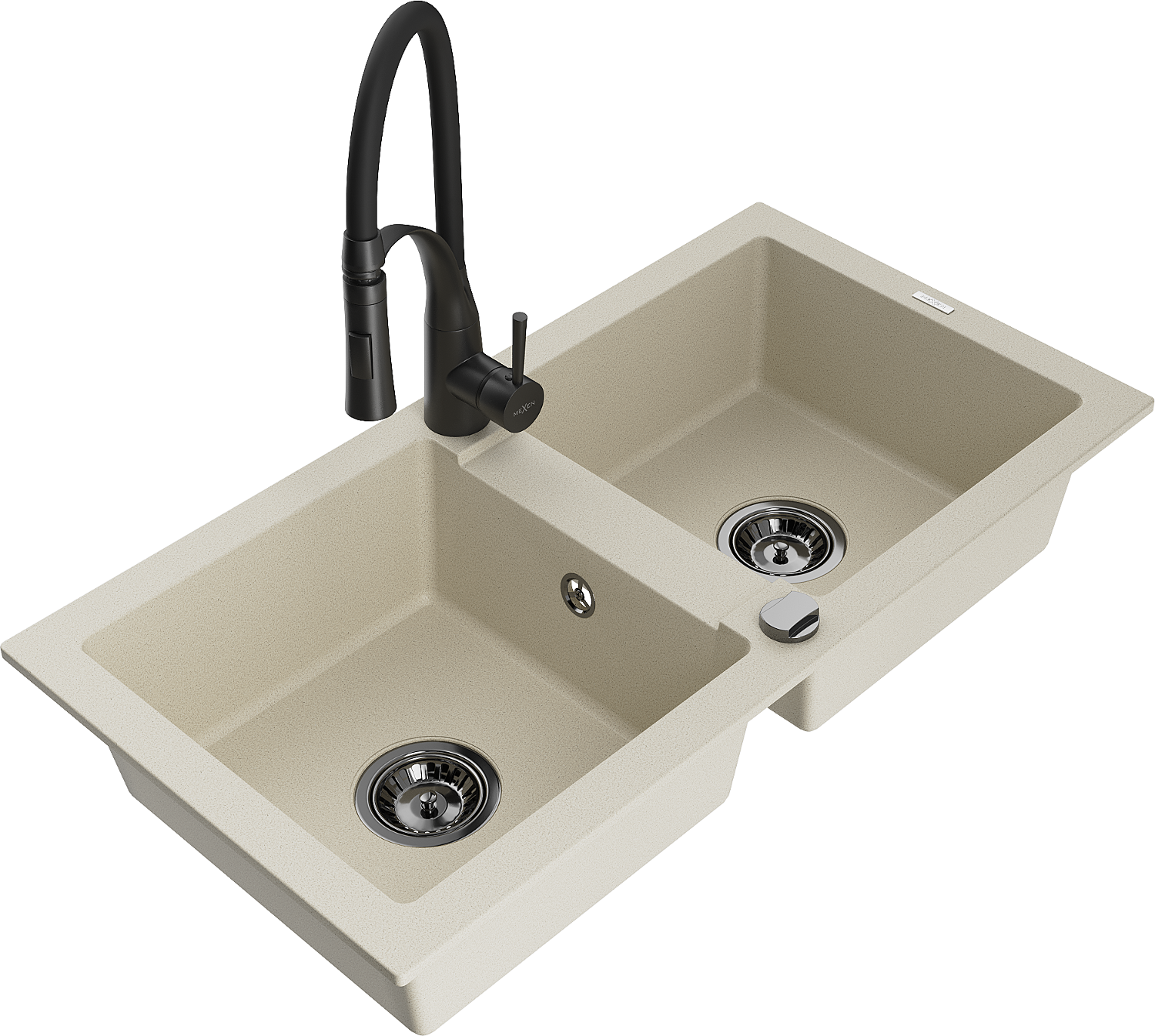 Mexen Mario granitinis plautuvė 2-dalių su virtuviniu maišytuvu Aster, smėlio spalvos - 6504-69-73450-70-B