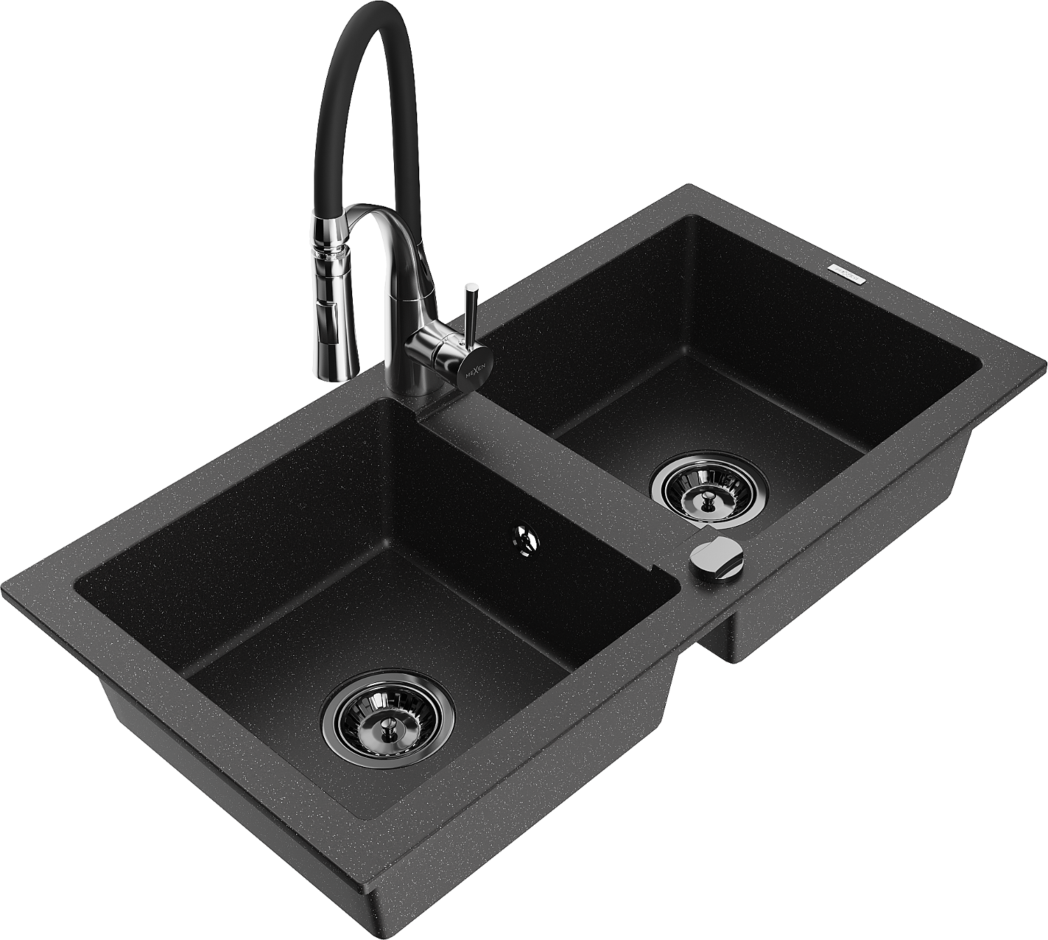 Mexen Mario granito plautuvė 2-jų skyrių su virtuviniu maišytuvu Aster, juodas/sidabrinis metalikas - 6504-73-73450-07-B