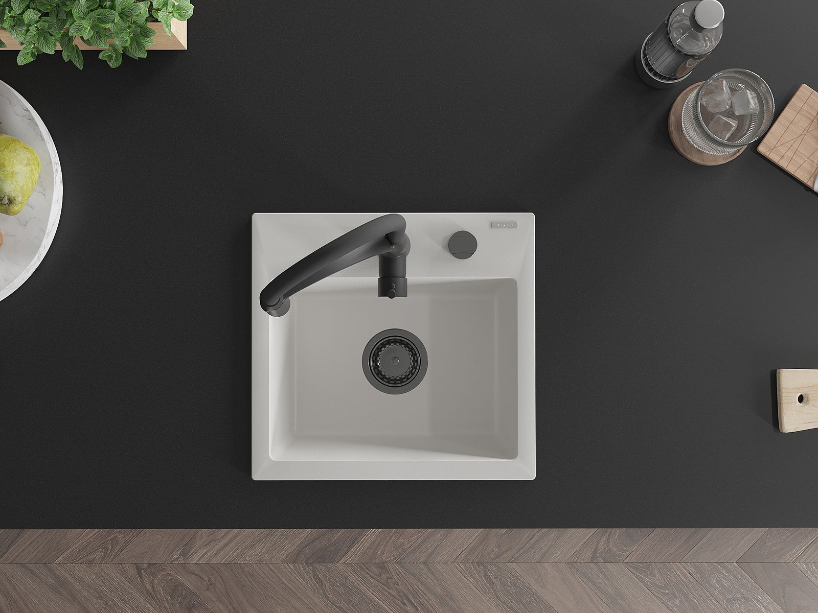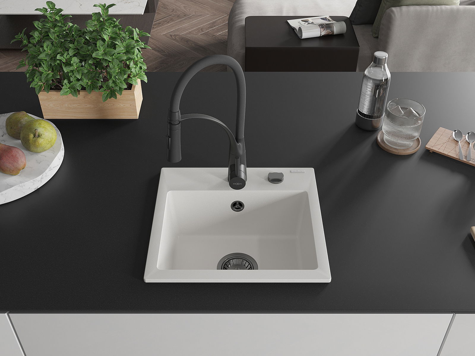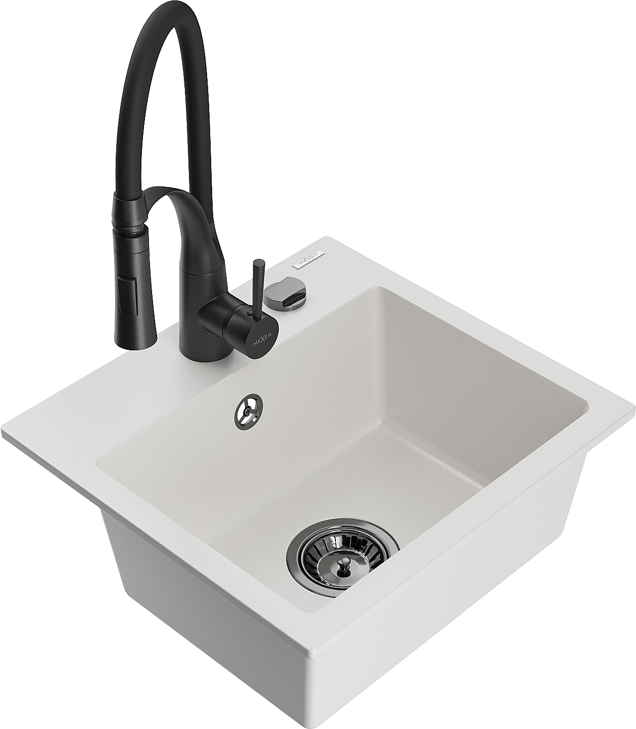 Mexen Milo granito plautuvė 1 skyrelio su virtuviniu maišytuvu Aster, baltas - 6505-20-73450-70-B