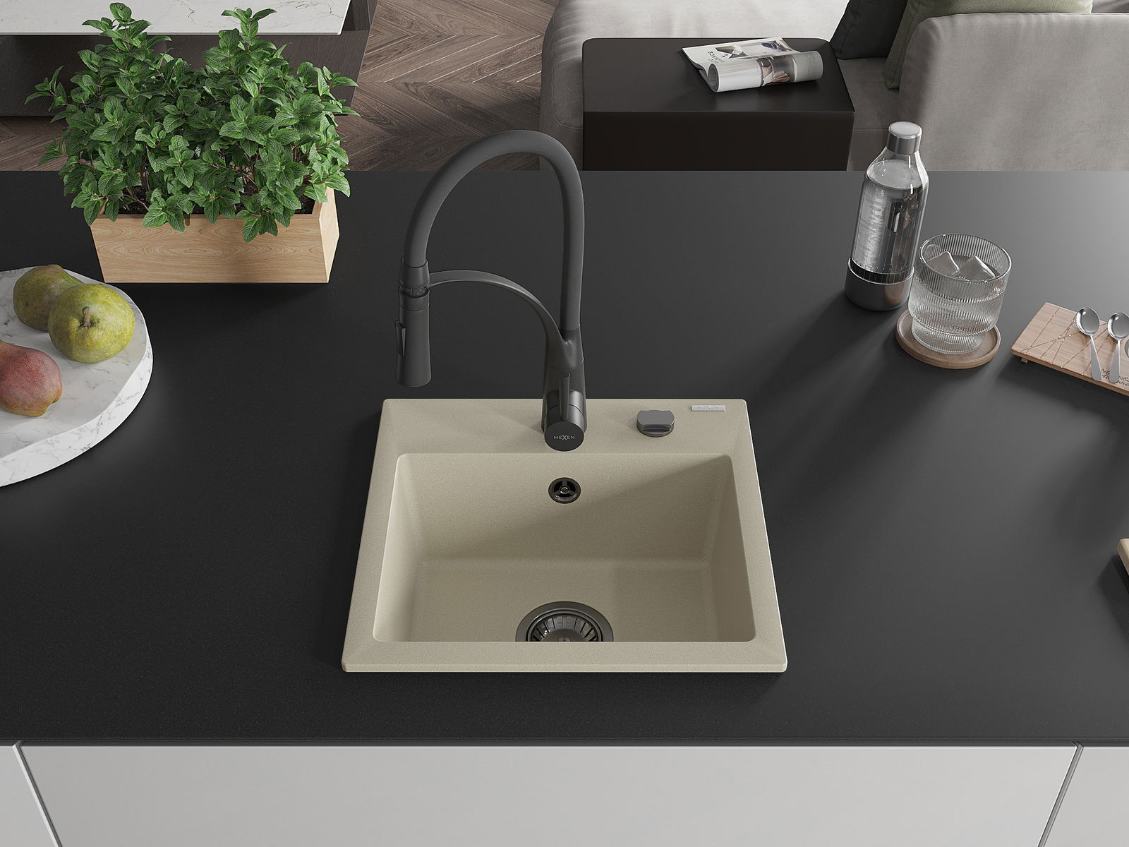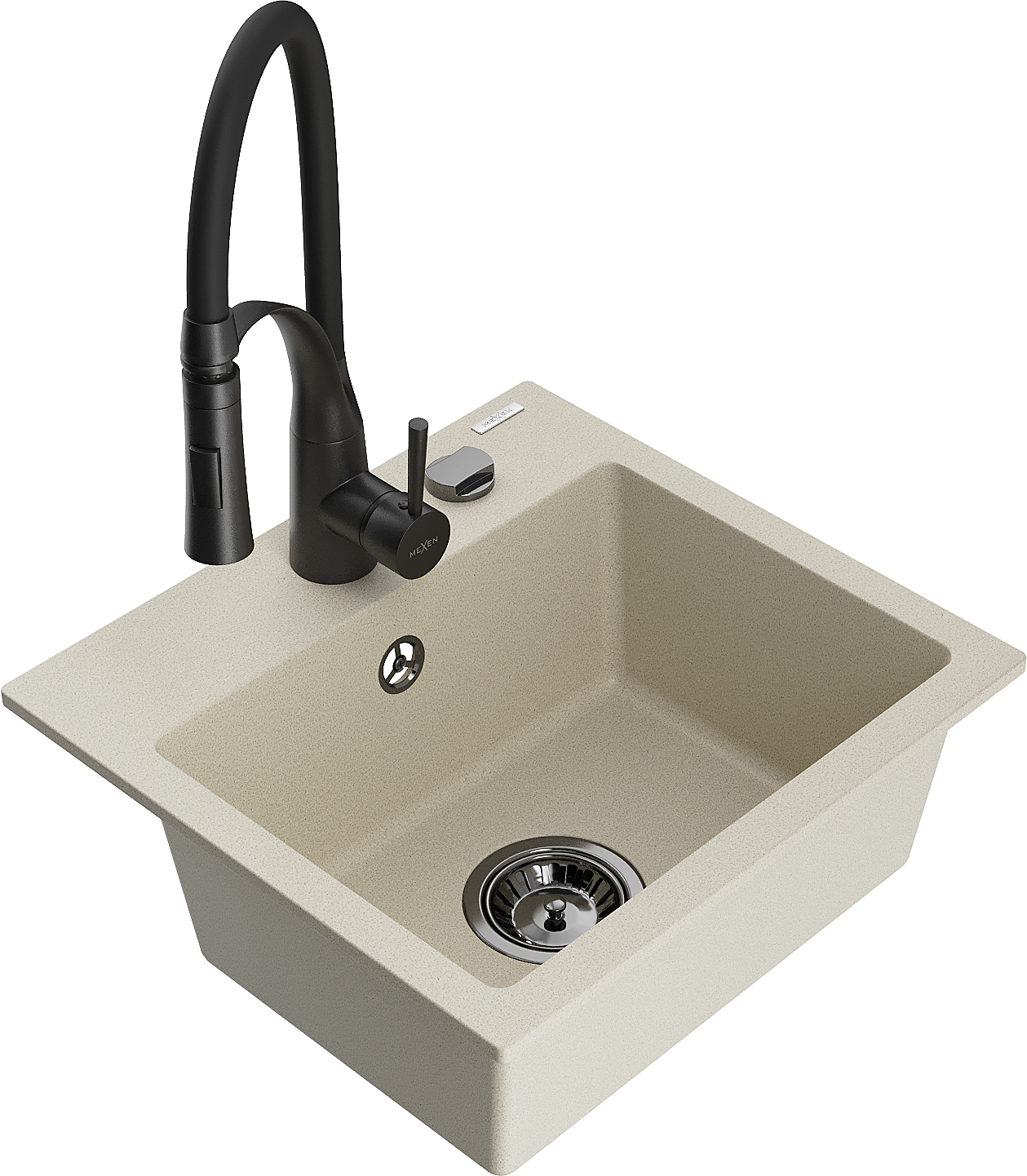 Mexen Milo vienos kameros granitinė plautuvė su Aster virtuvės maišytuvu, smėlio spalvos - 6505-69-73450-70-B