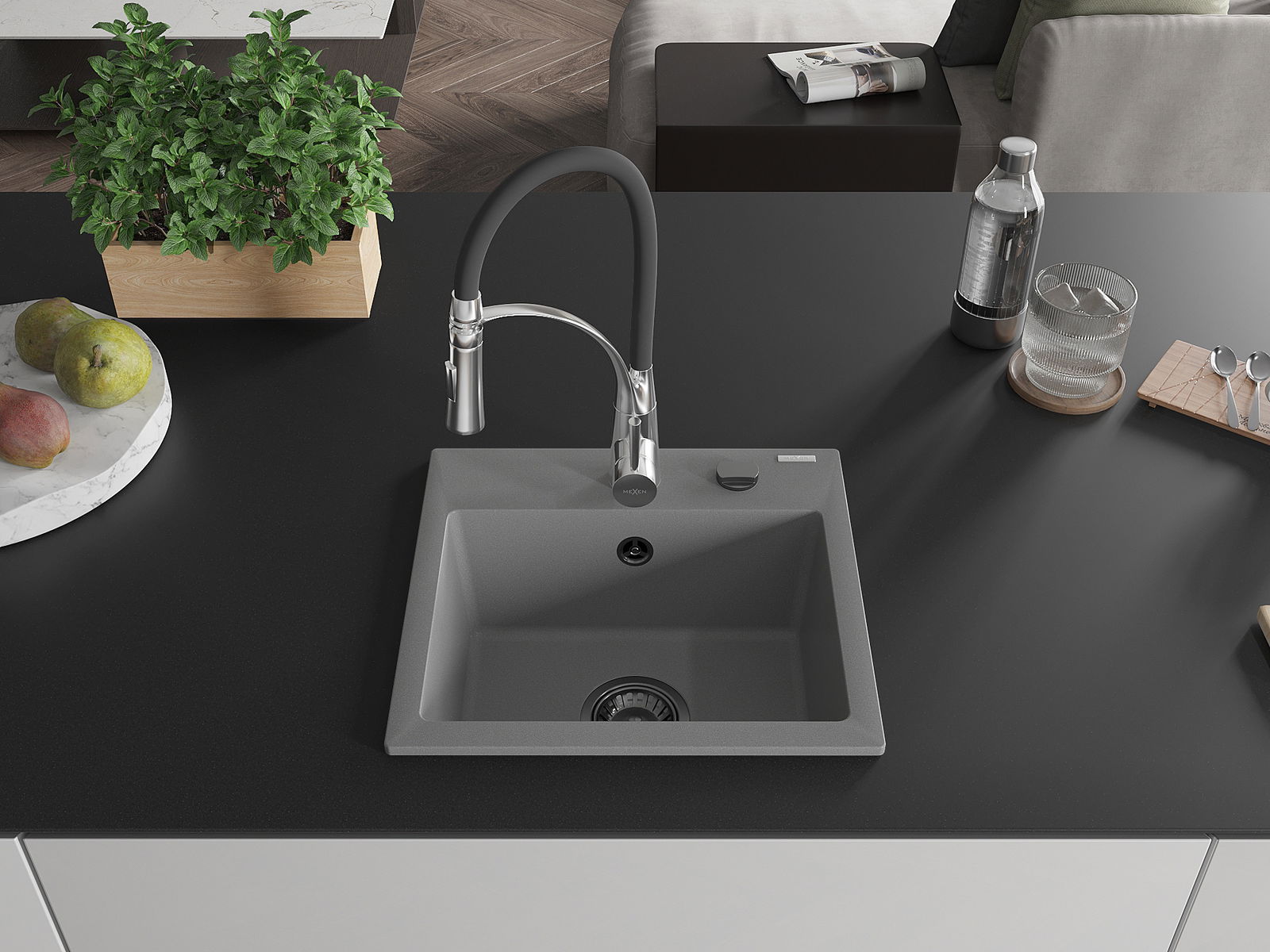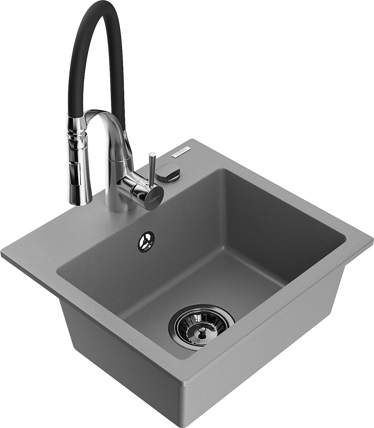 Mexen Milo granito plautuvė 1-skyriumi su virtuviniu maišytuvu Aster, pilka - 6505-71-73450-07-B