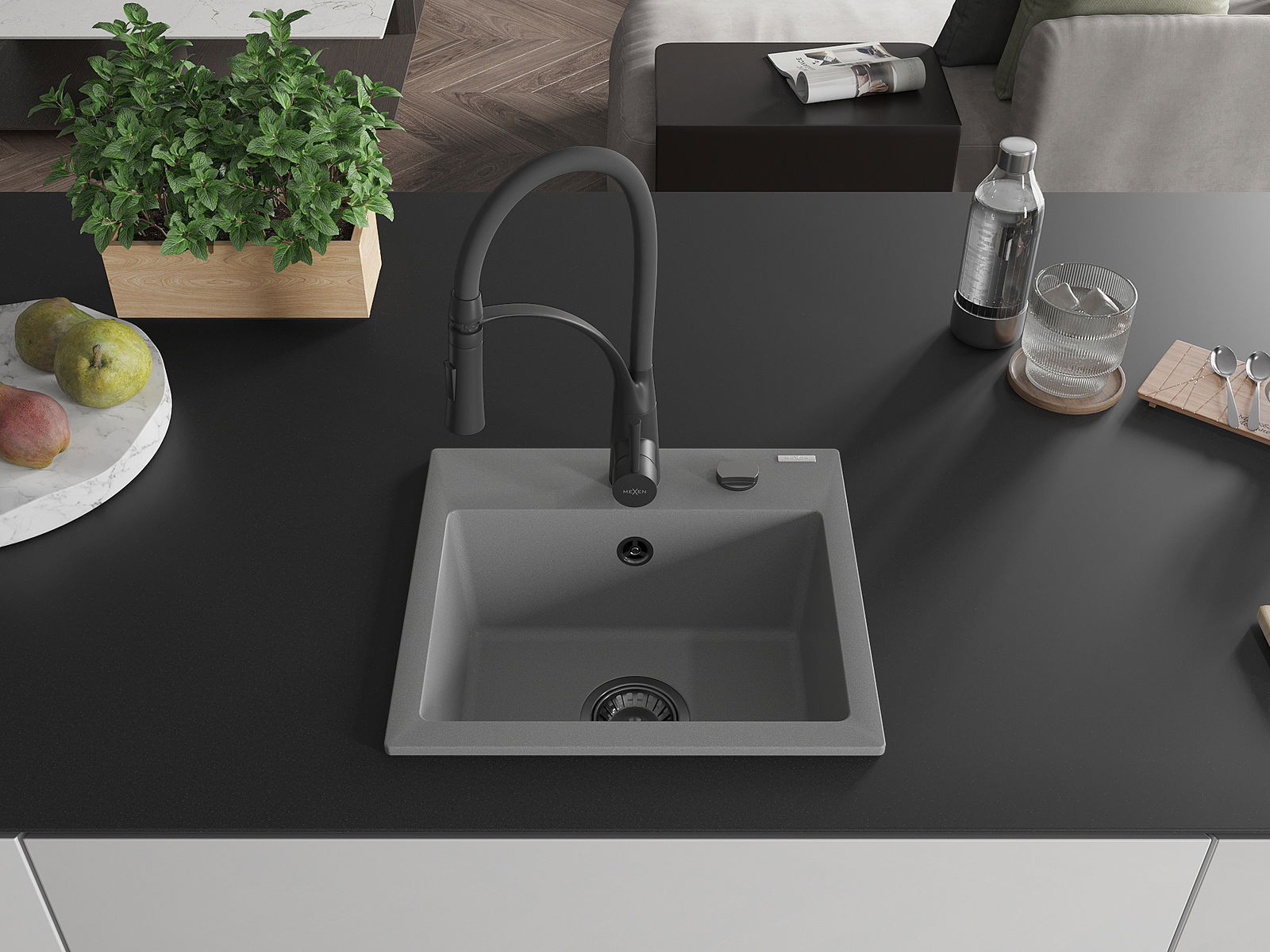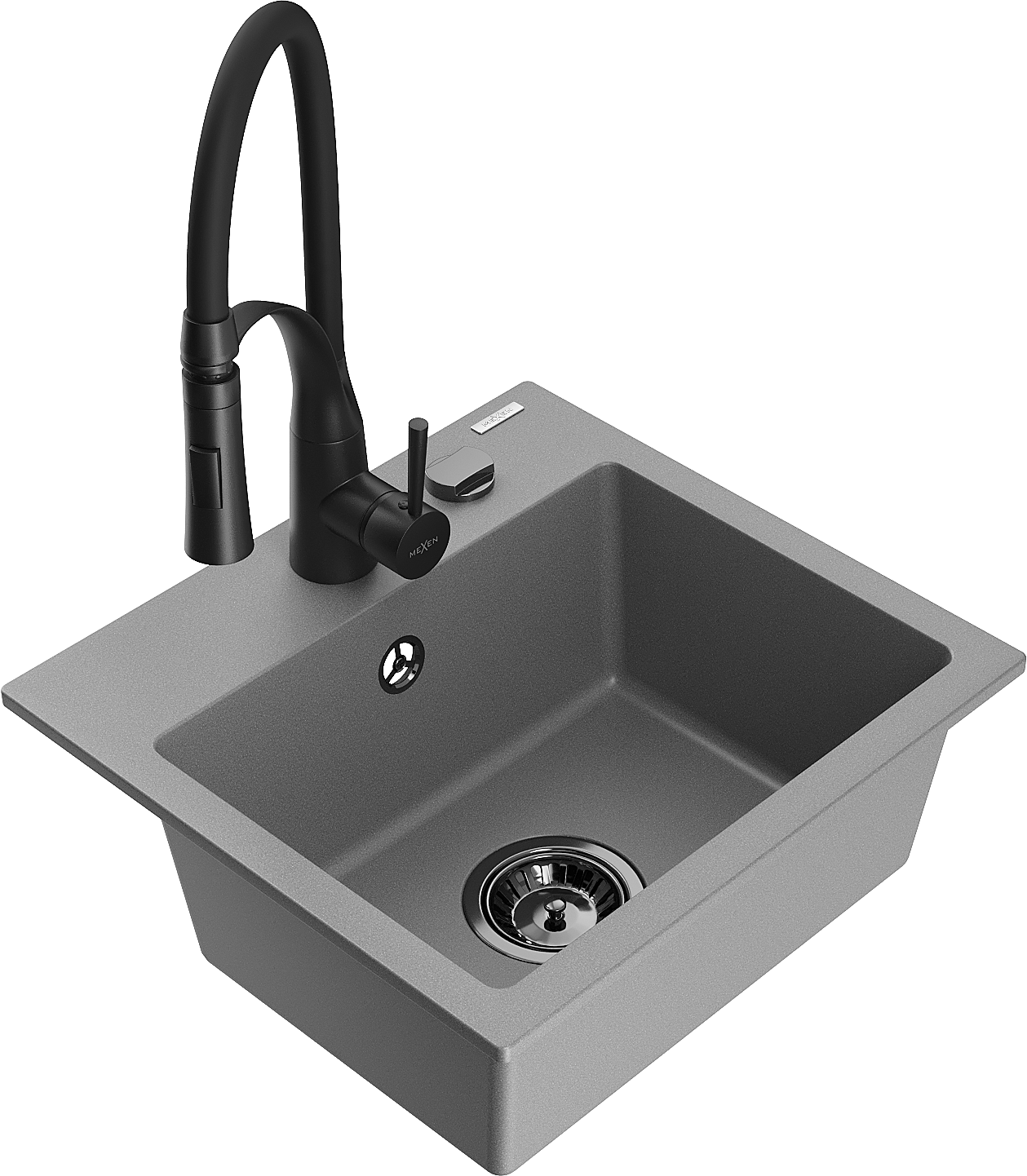 Mexen Milo vienos kameros granito plautuvė su Aster virtuviniu maišytuvu, pilka - 6505-71-73450-70-B