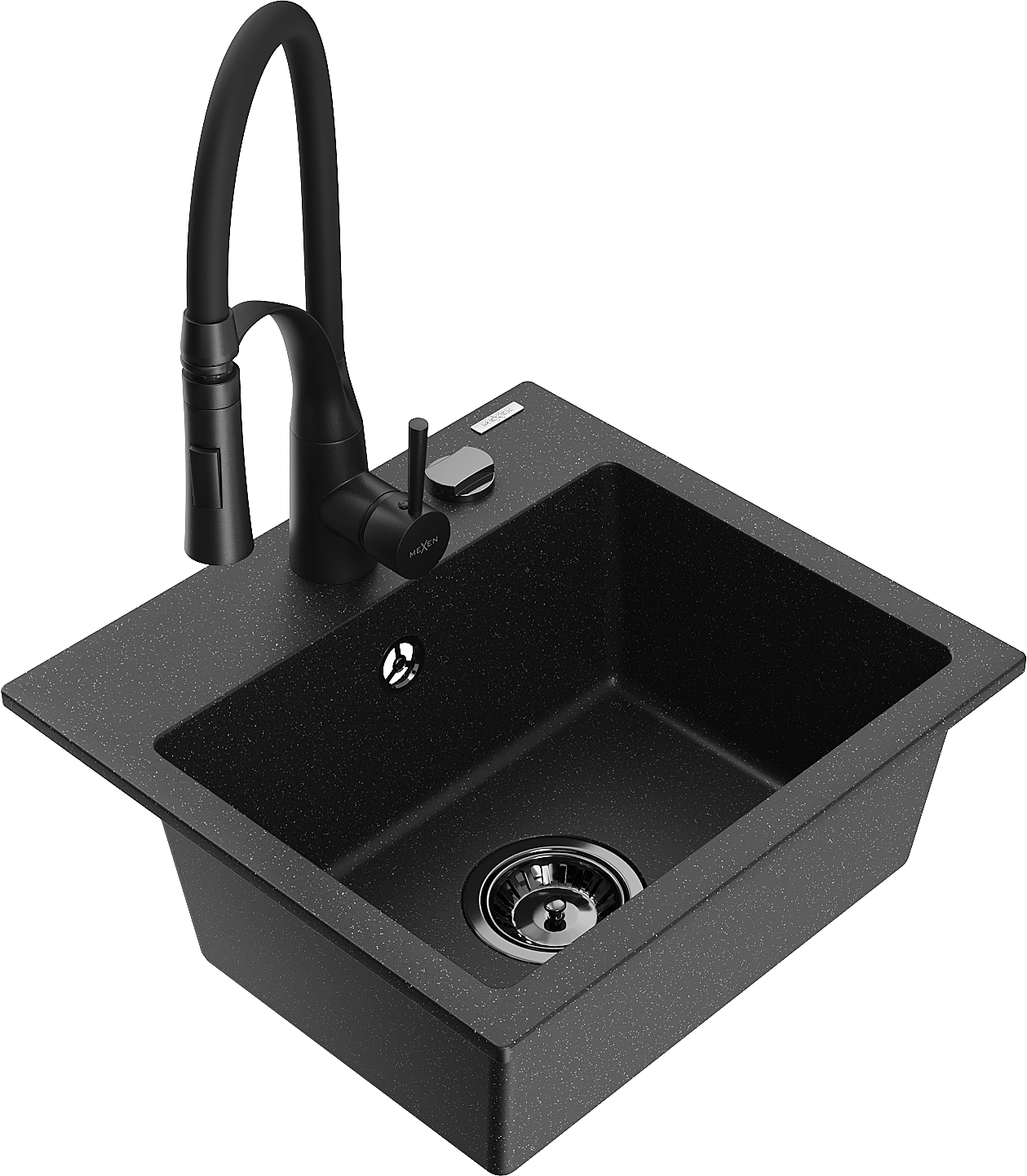 Mexen Milo vienos dalies granito plautuvė su virtuviniu maišytuvu Aster, juodas/sidabrinis metalikas - 6505-73-73450-70-B