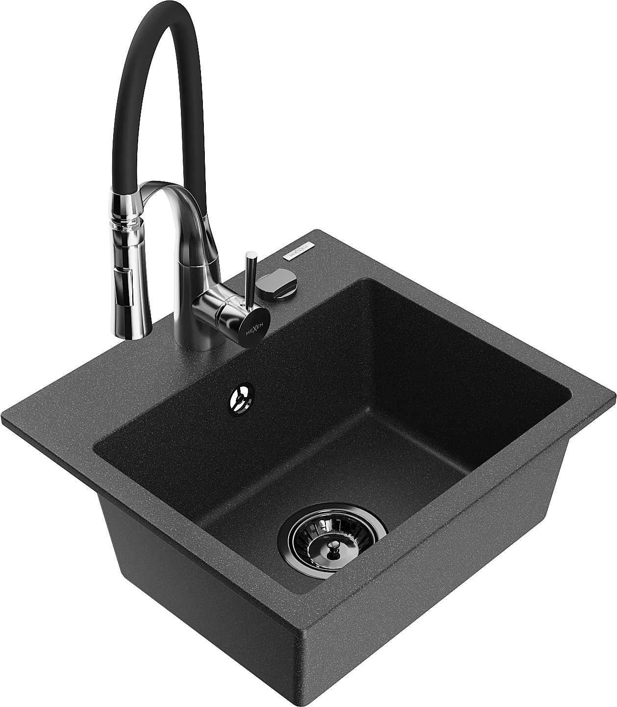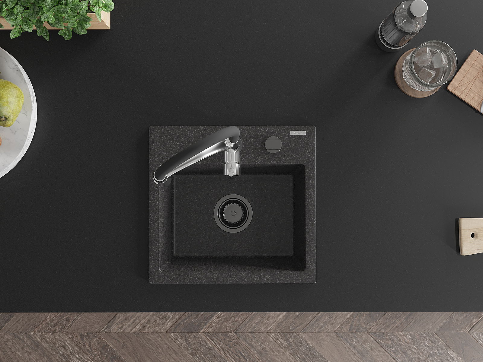 Mexen Milo granitinė virtuvės kriauklė 1 skyrelio su virtuviniu maišytuvu Aster, juoda taškuota - 6505-76-73450-07-B