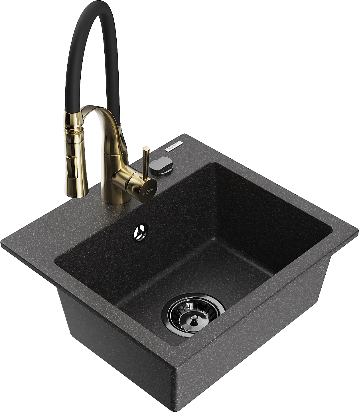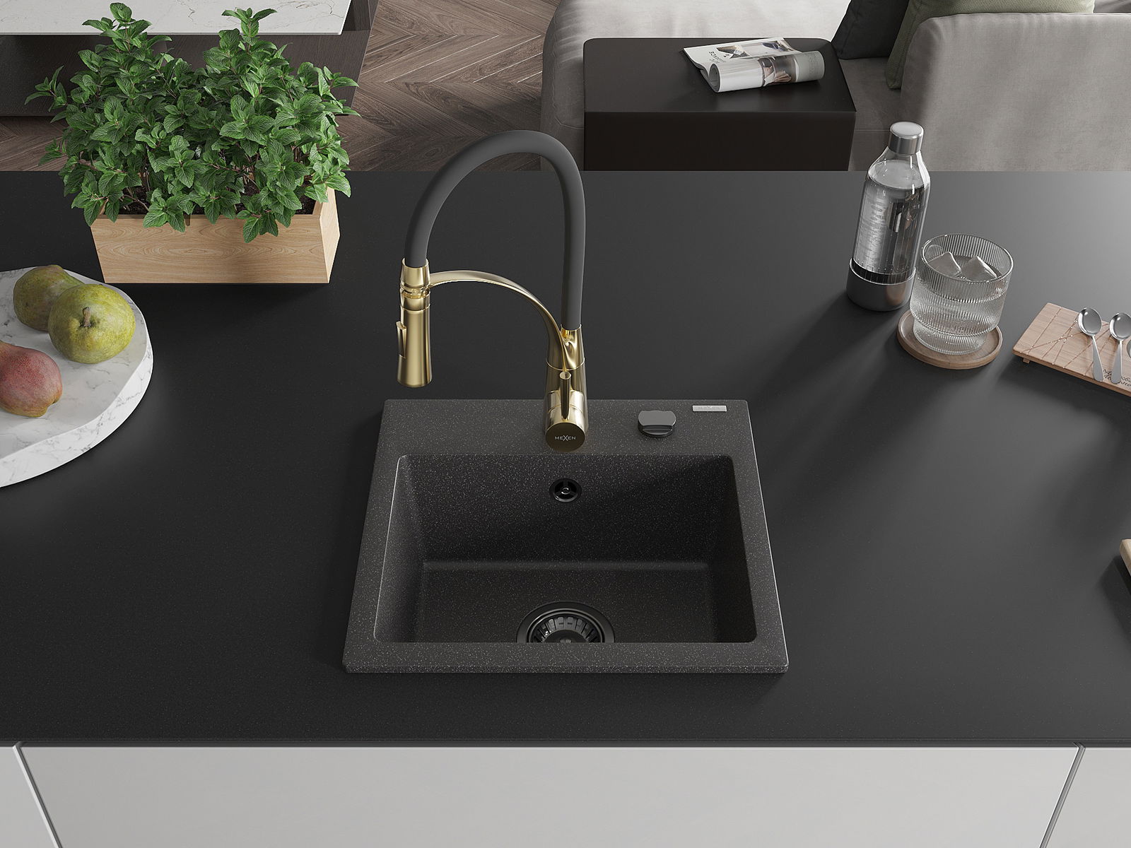 Mexen Milo granito plautuvė 1-skyrius su virtuviniu maišytuvu Aster, juodas taškuotas - 6505-76-73450-57-B