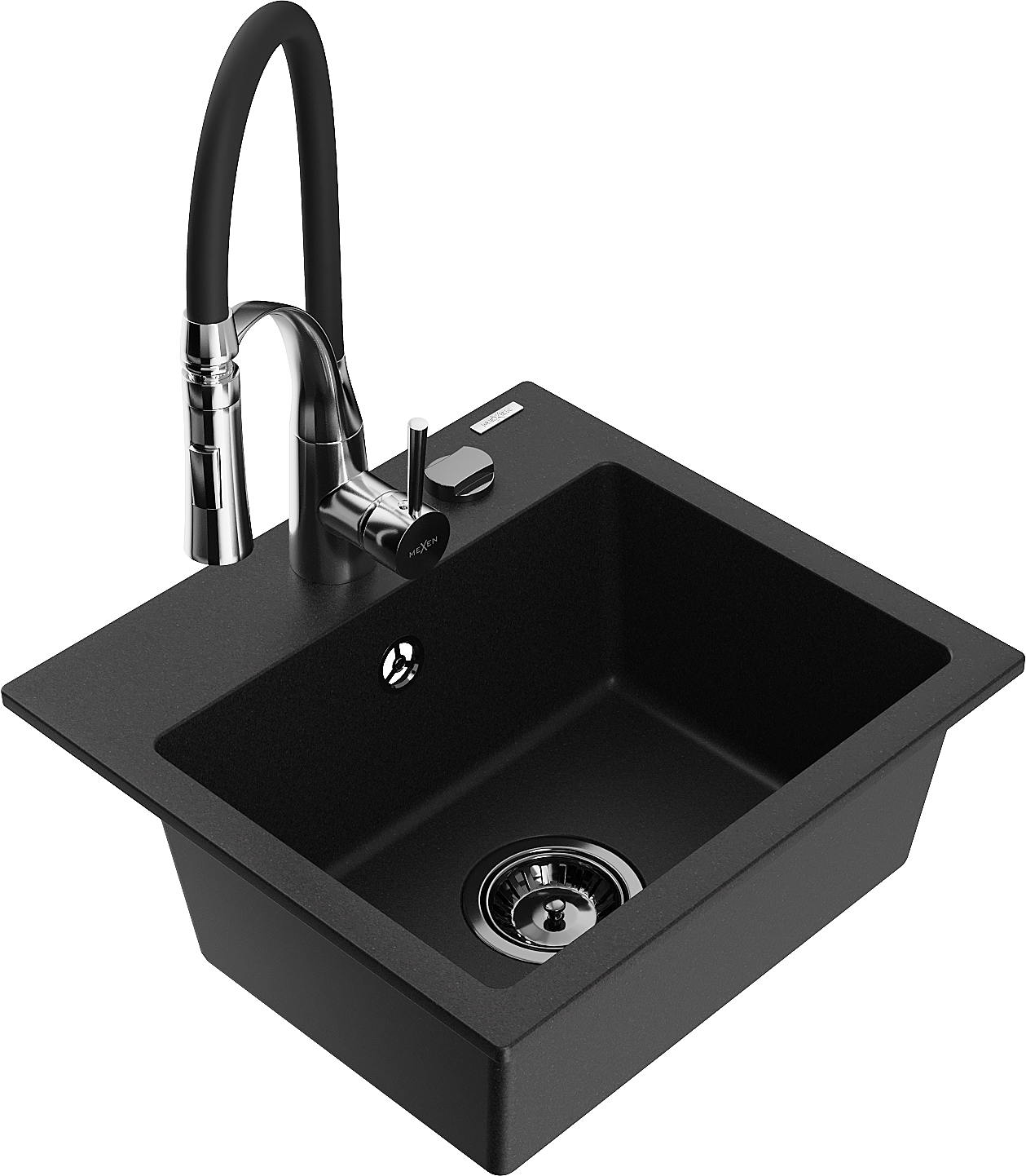 Mexen Milo granito plautuvė su vienu dubeniu ir Aster virtuviniu maišytuvu, juoda - 6505-77-73450-07-B