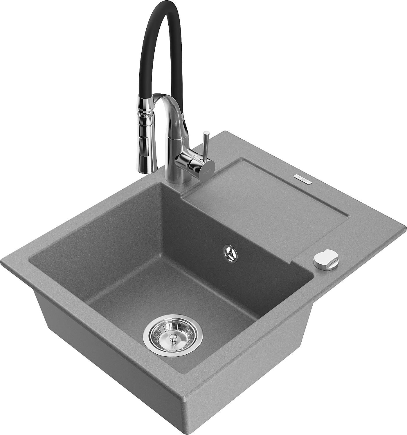 Mexen Enzo granitinis vienos kameros plautuvas su nutekėjimu ir virtuviniu maišytuvu Aster, pilkas - 6506-71-73450-07