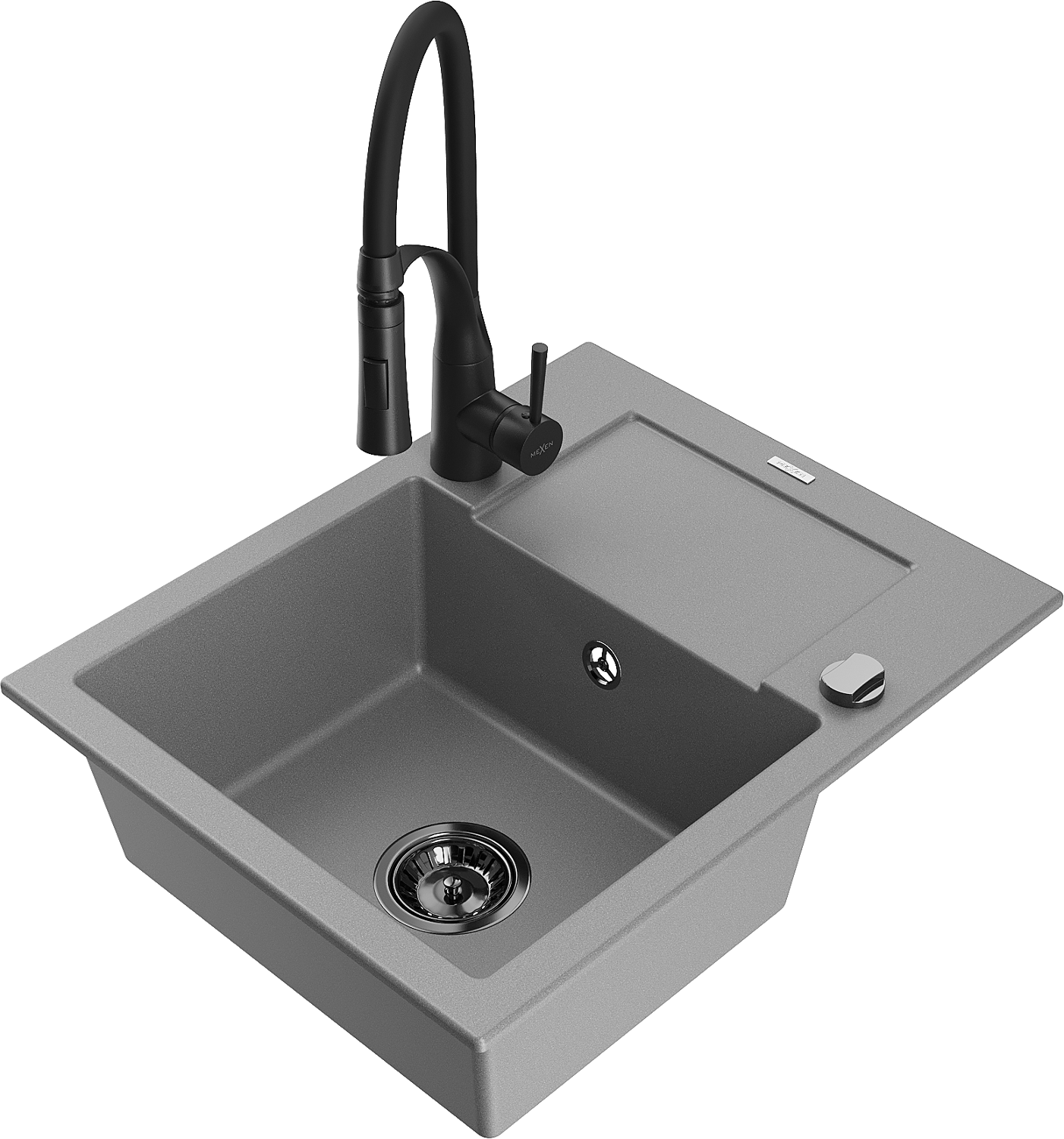 Mexen Enzo granitinis plautuvė 1 skylių su varvine ir virtuviniu maišytuvu Aster, pilkas - 6506-71-73450-70-B