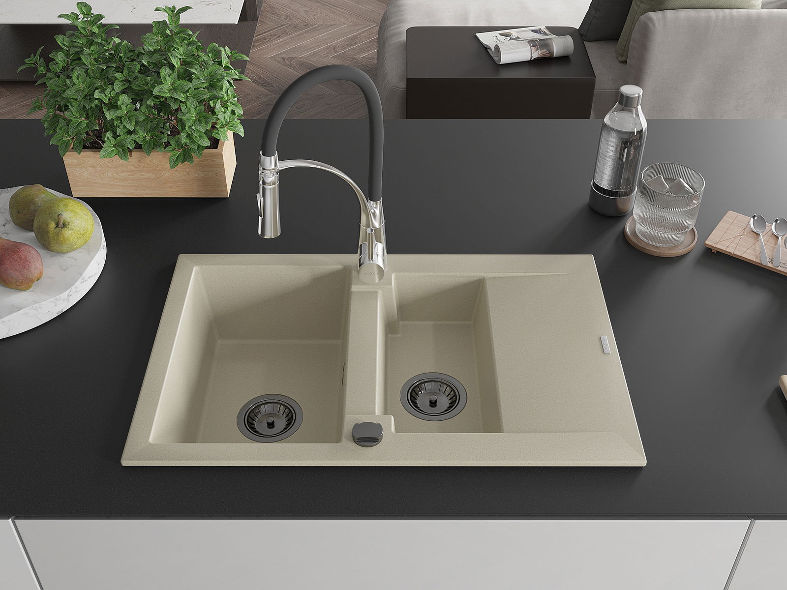 Mexen Gaspar granitinė 1,5 kamerų plautuvė su nuvarvėjimu ir virtuviniu maišytuvu Aster, smėlio - 6507-69-73450-07-B