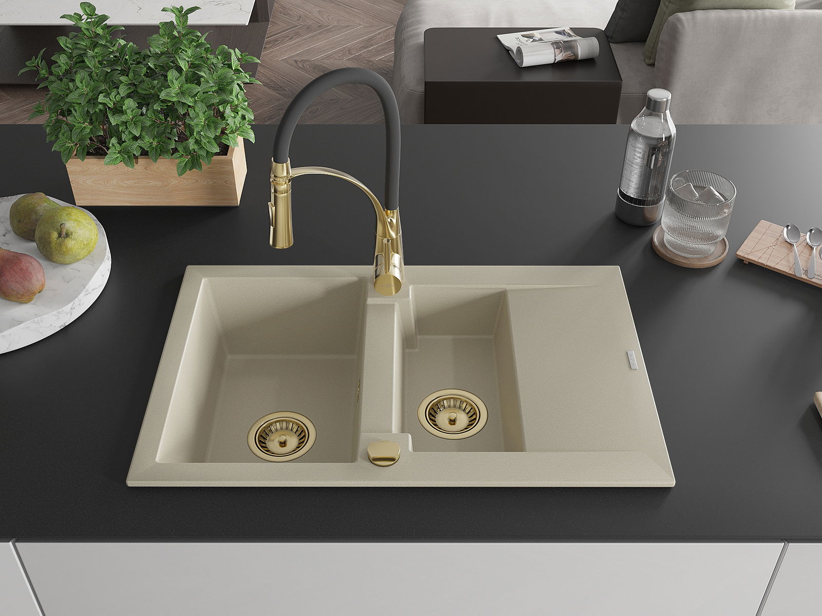 Mexen Gaspar granito kriauklė su 1,5 kamera ir nutekamuoju sertaura, bežinis - 6507-69-73450-57-G