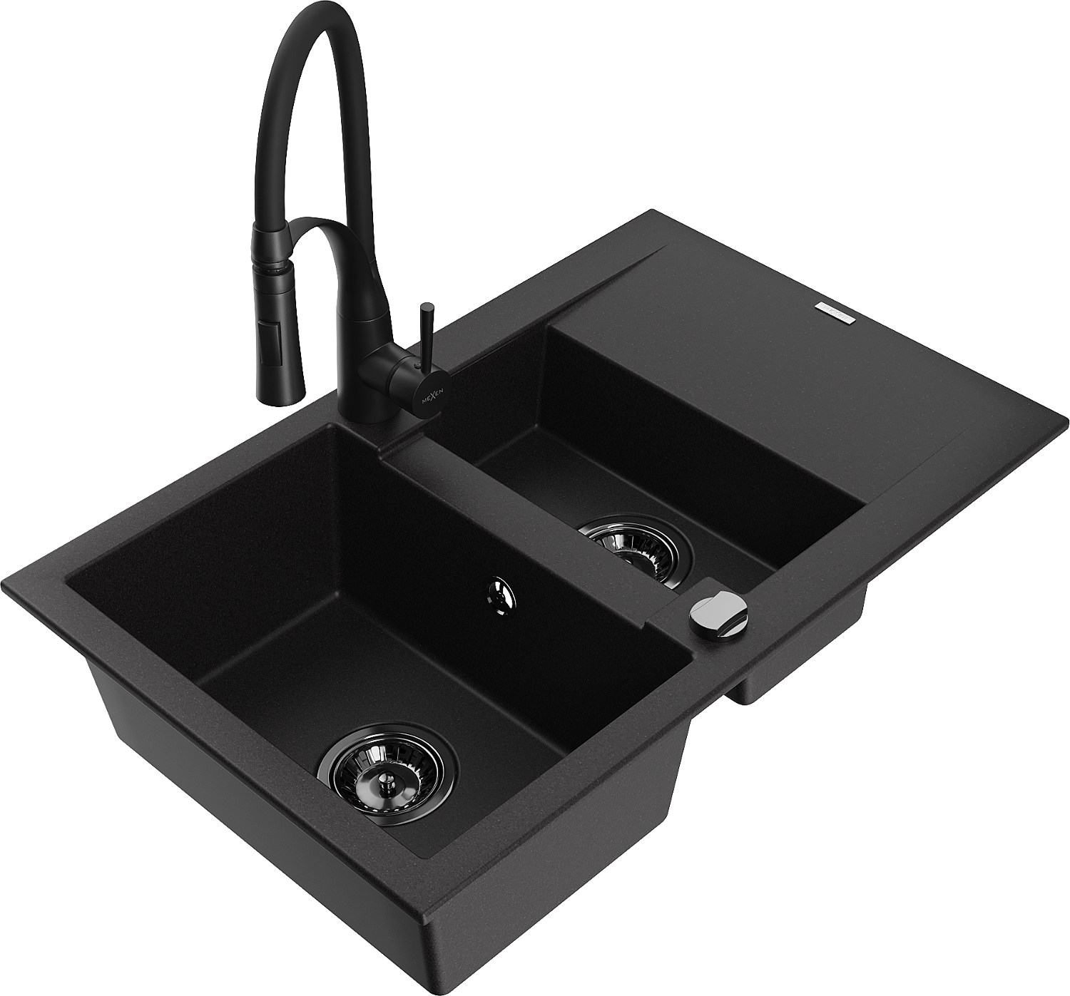 Mexen Gaspar granitinė 1,5 skyrių plautuvė su nusausintuvu ir Aster virtuviniu maišytuvu, juodas - 6507-77-73450-70-B