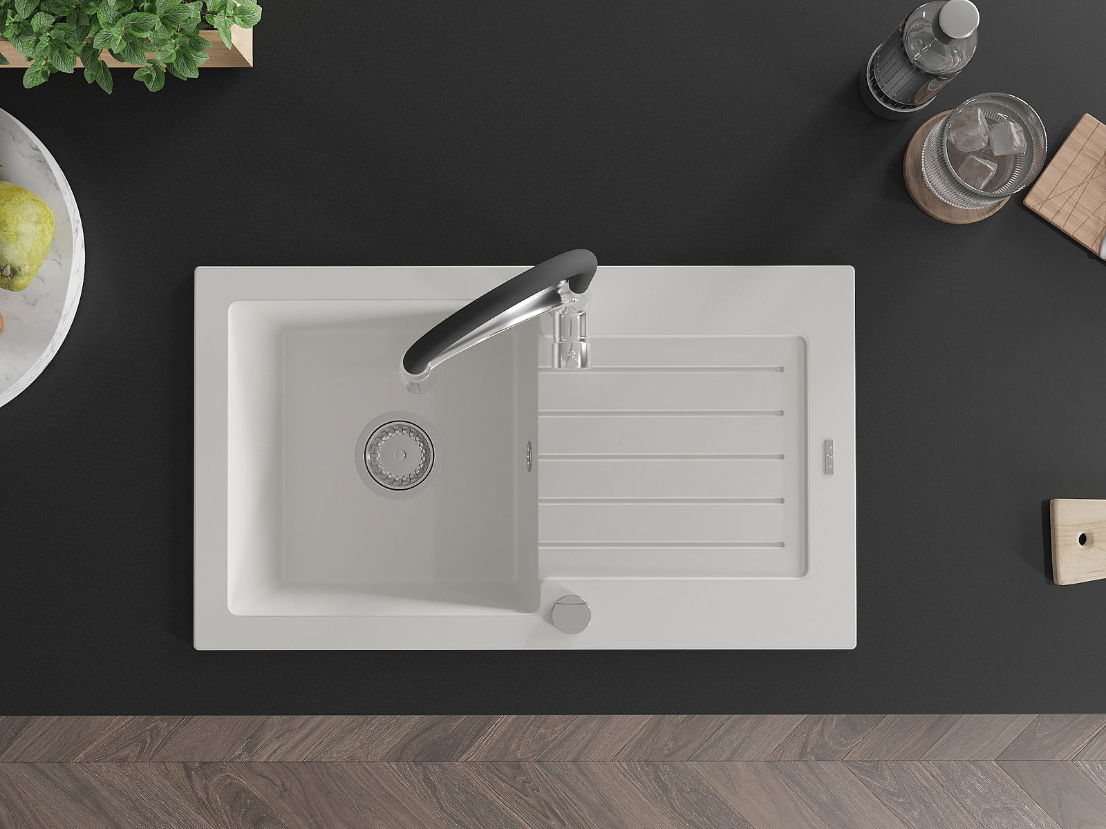 Kriauklės paviršius yra atsparus dėmėms ir spalvos pokyčiams, todėl jį lengva prižiūrėti ir jis išlaiko savo spalvą ilgą laiką. Estetiškai ir praktiškai papildo kiekvieną virtuvę.