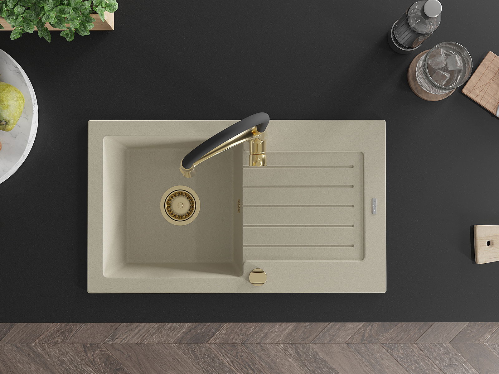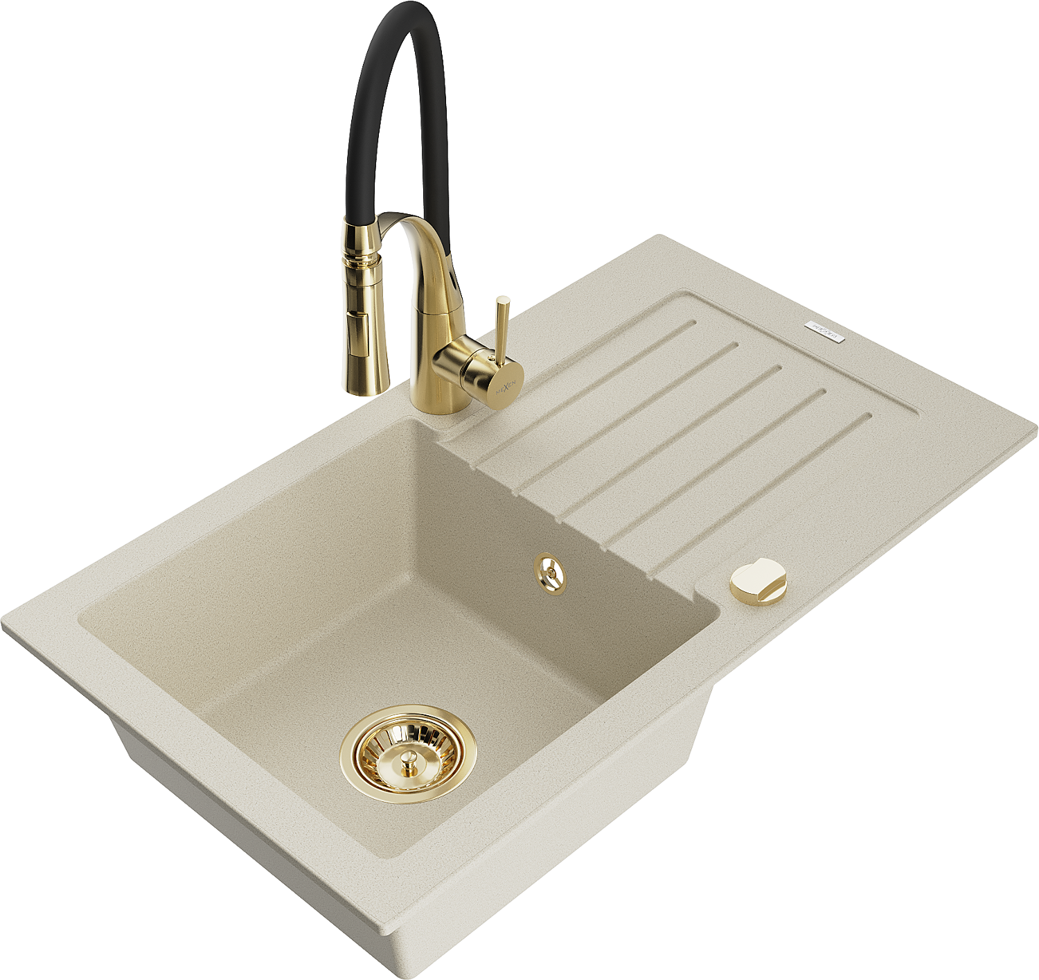 Mexen Pablo granitinė 1 skyrelio plautuvė su nusausintuvu ir virtuviniu maišytuvu Aster, smėlio spalvos - 6510-69-73450-57-G