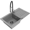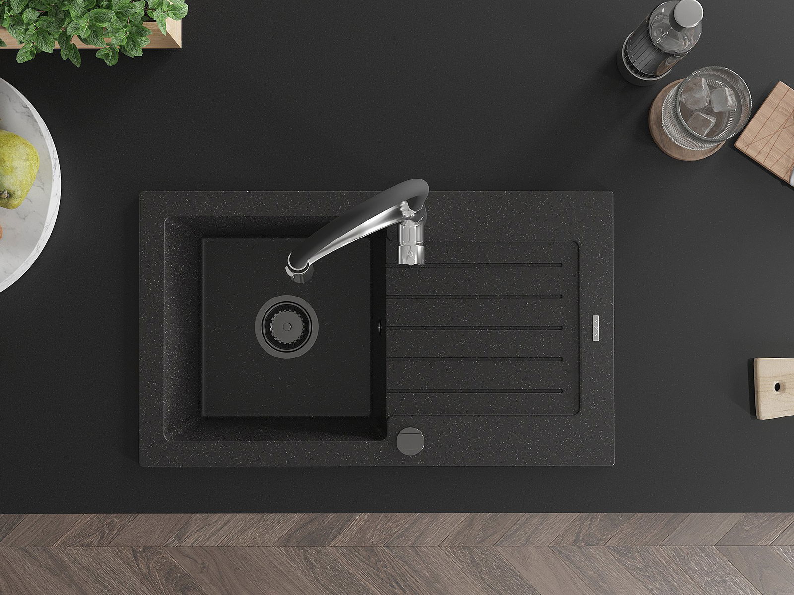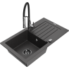Mexen Pablo grindinis akmens vienos kameros kriauklė su nusausinimo skyriumi ir virtuvės maišytuvu Aster, juoda/sidabrinė