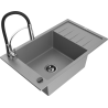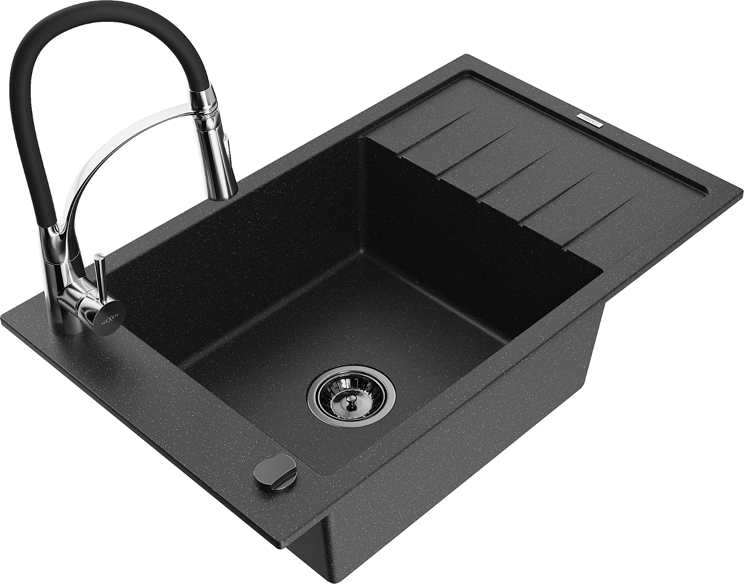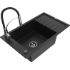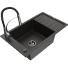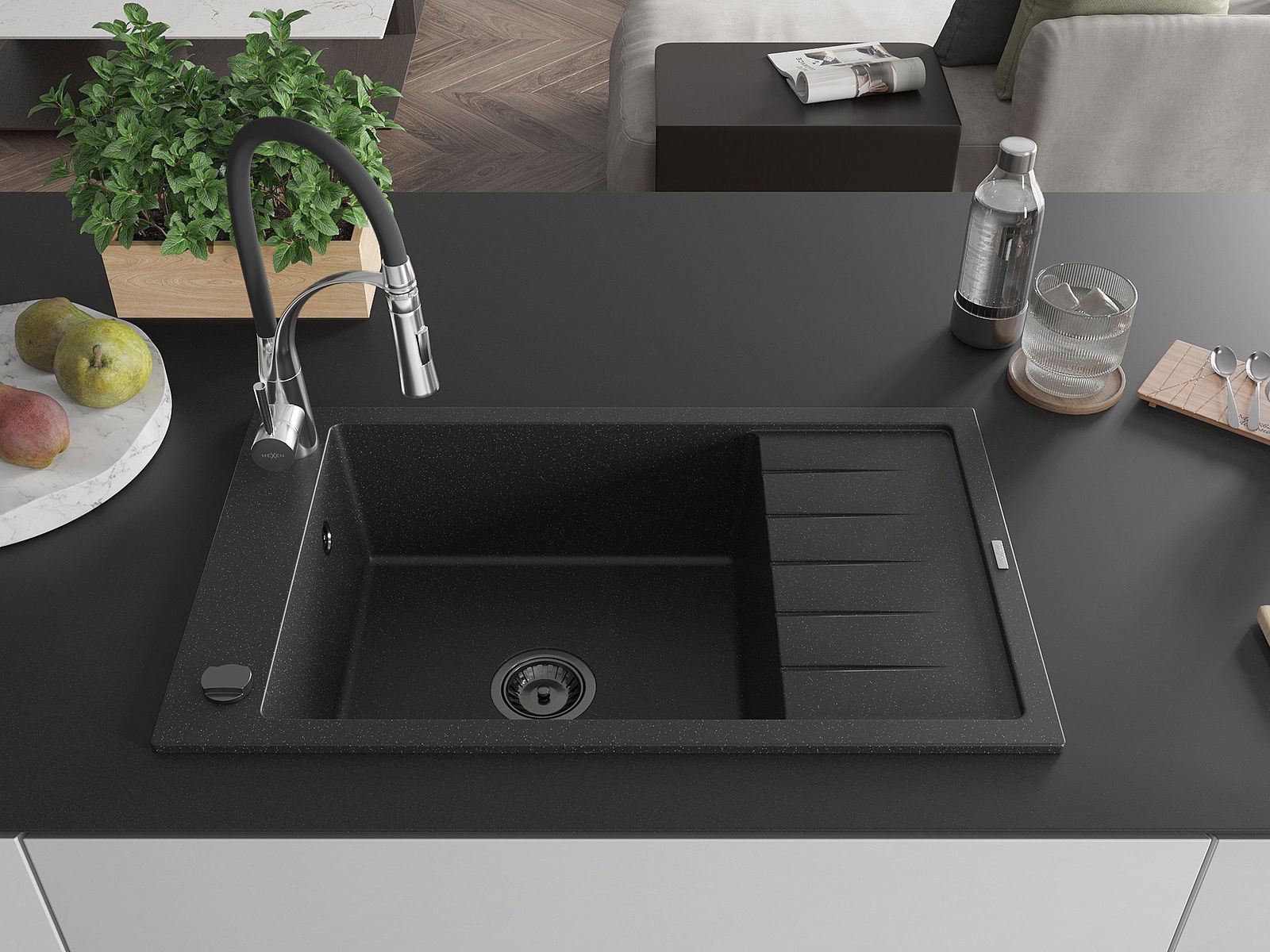 Mexen Elias granitinė vienos angos kriauklė su nuvarvėjimo padėklu ir virtuvinės baterija Aster, juoda/sidabrinė metalo