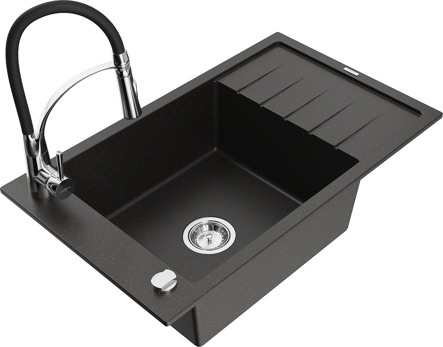 Mexen Elias granitinis 1 dubens plautuvė su nusausintuvu ir virtuviniu maišytuvu Aster, juodas/auksinis metalikas - 6511-75-734?