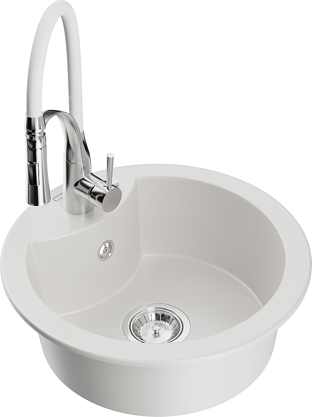Mexen Diego granitinis virtuvės kriauklė su vienu dubeniu ir Aster maišytuvu, balta - 6512-20-73450-02