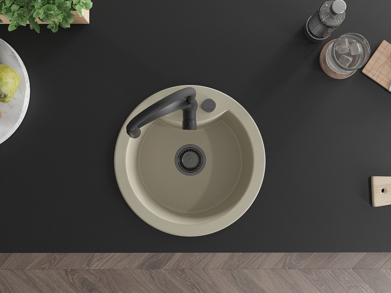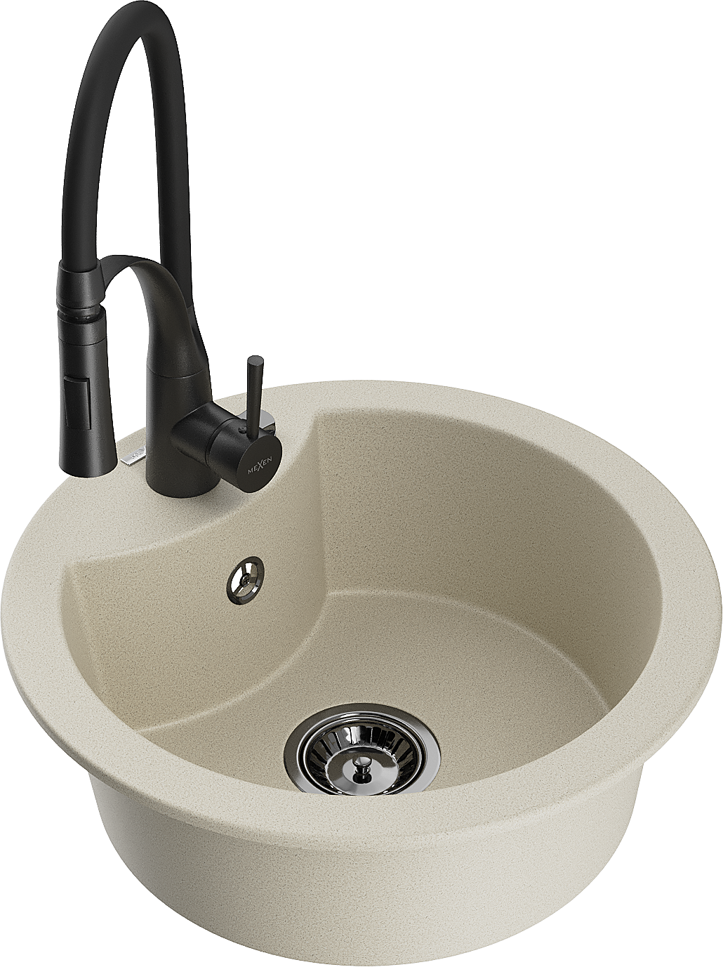 Mexen Diego granito plautuvė, 1 skyrelio, su virtuviniu maišytuvu Aster, smėlio spalvos - 6512-69-73450-70-B