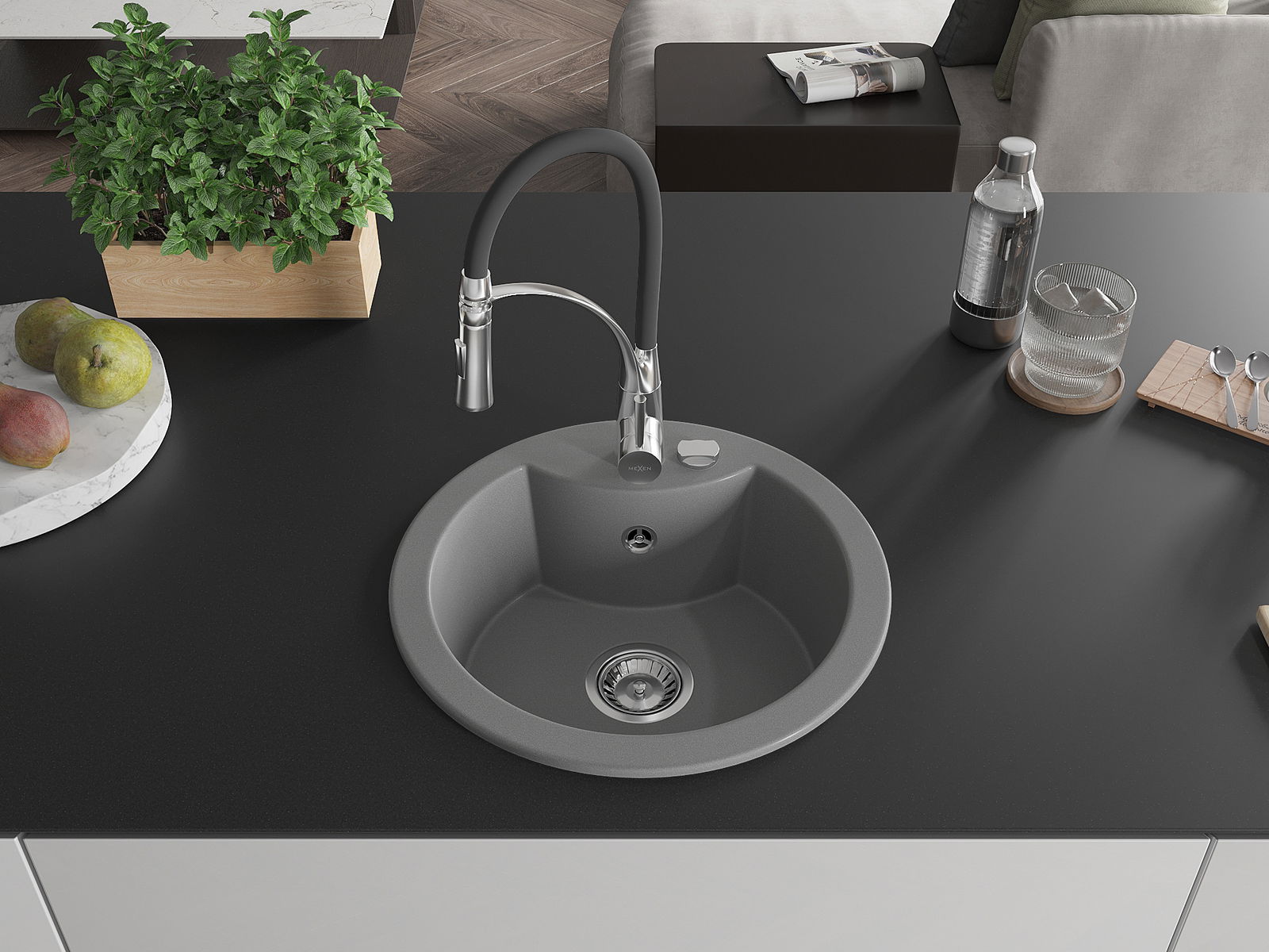 Kriauklės paviršius yra atsparūs dėmėms ir spalvos pasikeitimui, dėl kurio lengva valyti ir ilgą laiką išlaikyti savo spalvą. Estetinis ir praktiškai papildantis kiekvieną virtuvę.