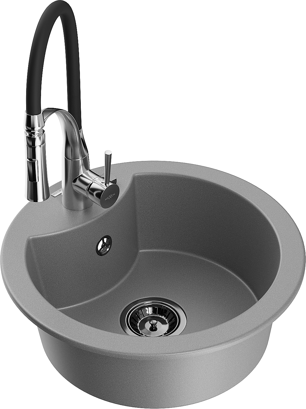 Mexen Diego granitinis plautuvė 1 skyrius su virtuviniu maišytuvu Aster, pilkas - 6512-71-73450-07-B