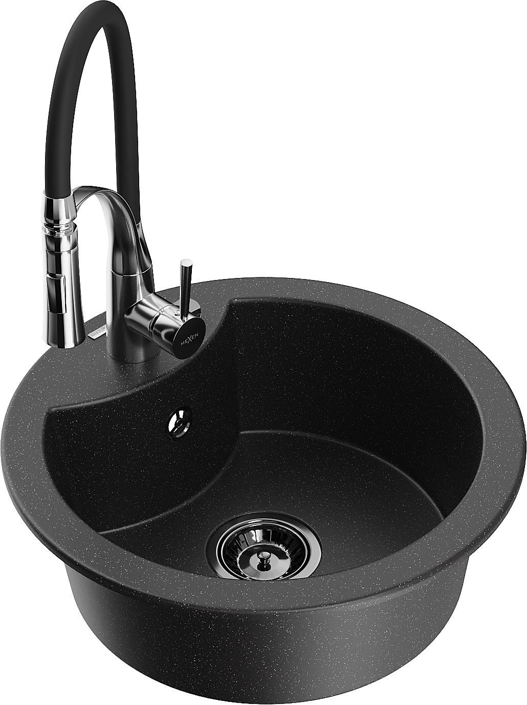Mexen Diego grindinis kriauklė vienos kameros su virtuvės maišytuvu Aster, juodas/sidabrinis metalikas - 6512-73-73450-07-B