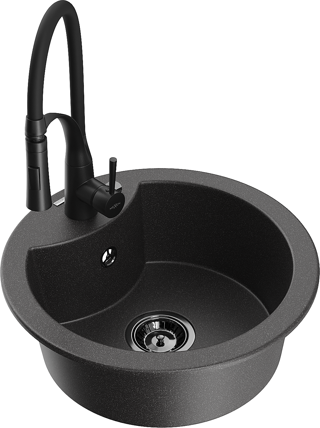 Mexen Diego granitinė vienos kameros plautuvė su virtuviniu maišytuvu Aster, juoda su dėmėmis - 6512-76-73450-70-B