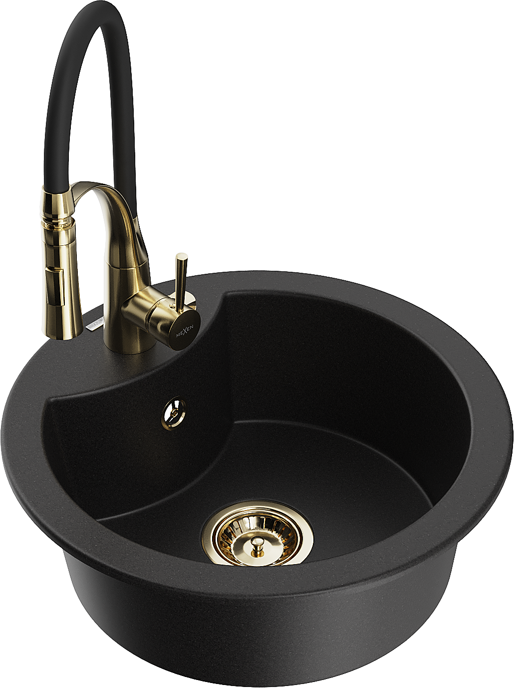 Mexen Diego granitinė vienos dubens plautuvė su Aster virtuviniu maišytuvu, juoda - 6512-77-73450-57-G