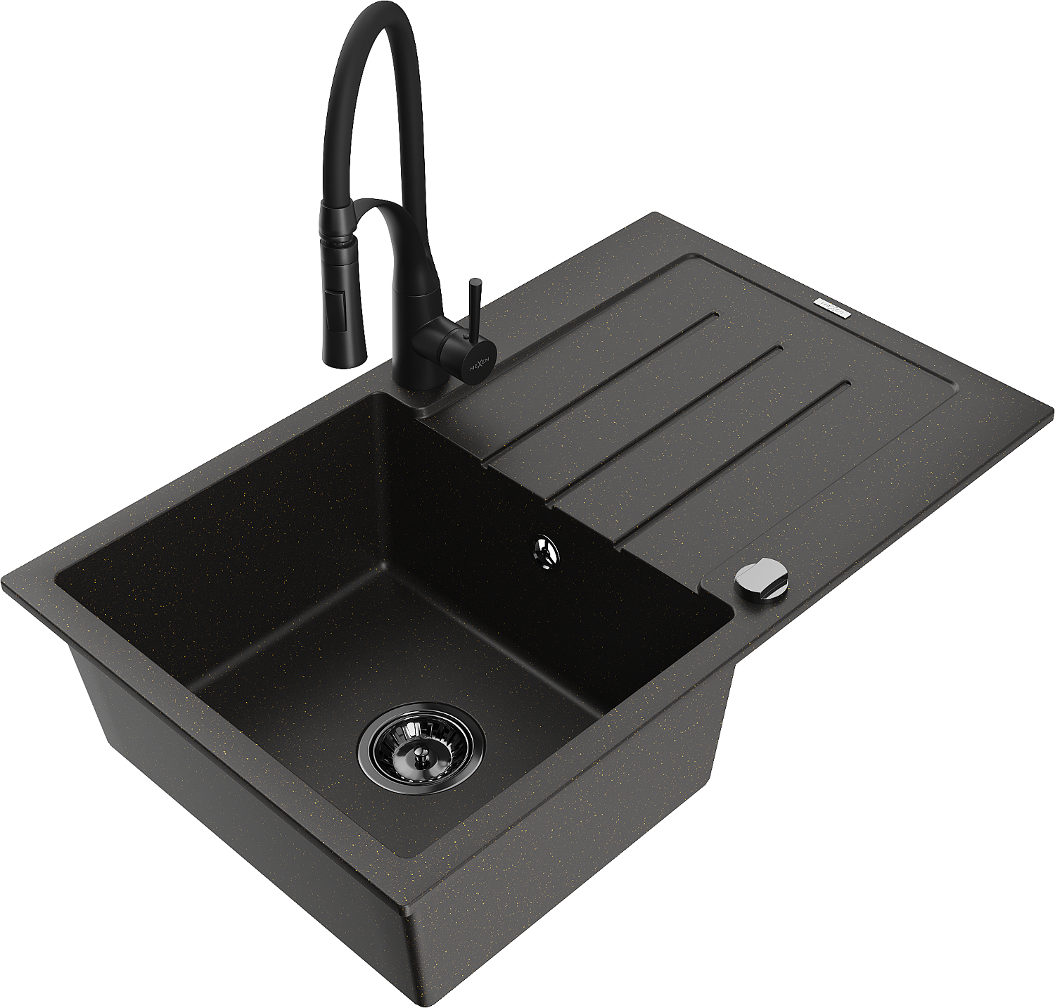 Mexen Bruno granitinė virtuvinė kriauklė su vienu skyriumi, nutekamu dendeniu ir „Aster“ virtuviniu maišytuvu,