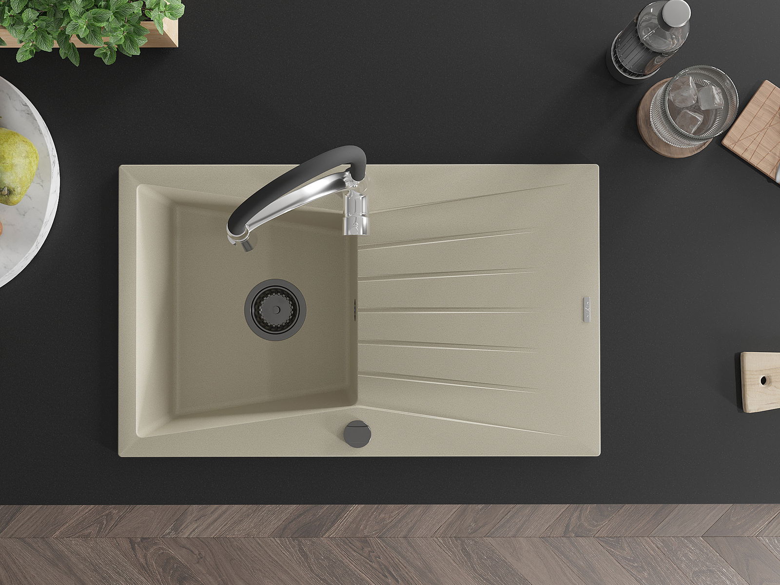 Kriauklės paviršius yra atsparus dėmėms ir spalvos pokyčiams, todėl jį lengva prižiūrėti ir jis išlaiko savo spalvą ilgą laiką. Estetiškai ir praktiškai papildo kiekvieną virtuvę.