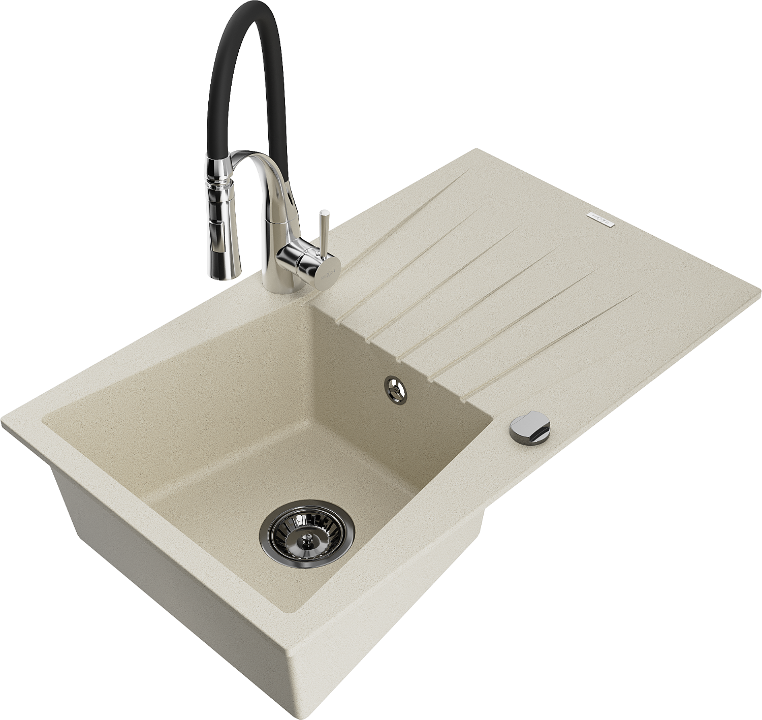 Mexen Cesar granitinis plautuvės 1 kamerų su nutekėjimu ir virtuvės maišytuvu Aster, smėlio spalvos - 6514-69-73450-07-B