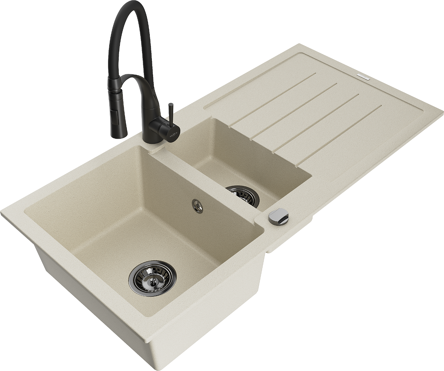 Mexen Andres granitinė plautuvė 1,5-dubeninė su nusausintuvu ir virtuviniu maišytuvu Aster, smėlinė - 6515-69-73450-70-B