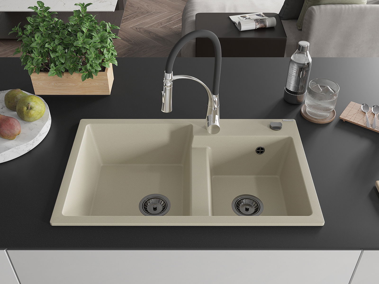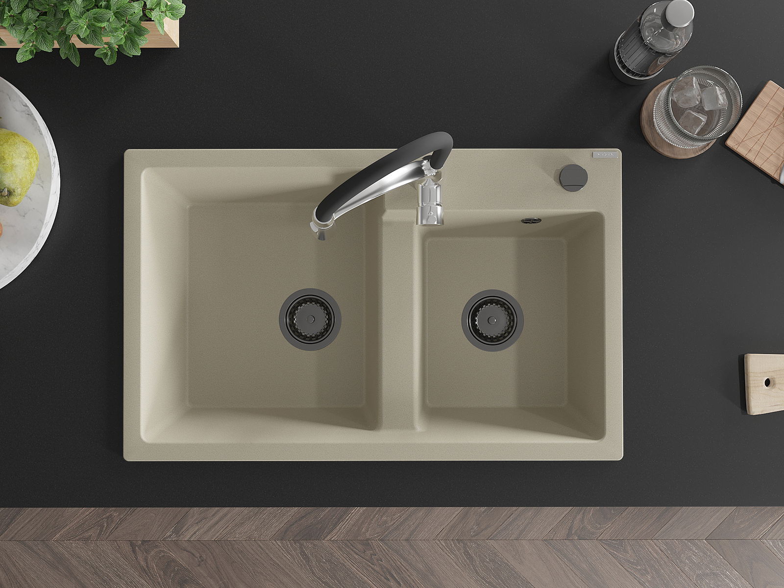 Kriauklės paviršius yra atsparūs dėmėms ir spalvos pasikeitimui, dėl kurio lengva valyti ir ilgą laiką išlaikyti savo spalvą. Estetinis ir praktiškai papildantis kiekvieną virtuvę.