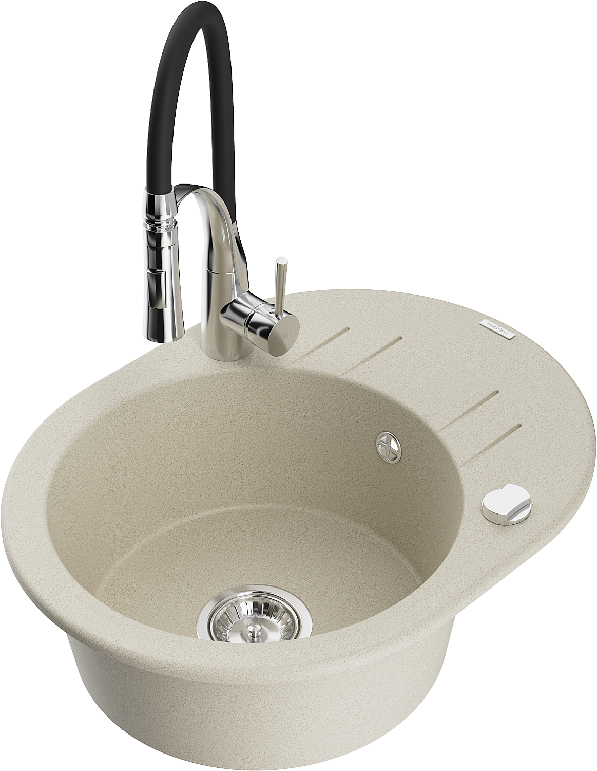 Mexen Kevin granito kriauklė su vienu dubeniu ir nusausintuvu bei virtuviniu maišytuvu Aster, smėlio spalvos - 6517-69-73450-07