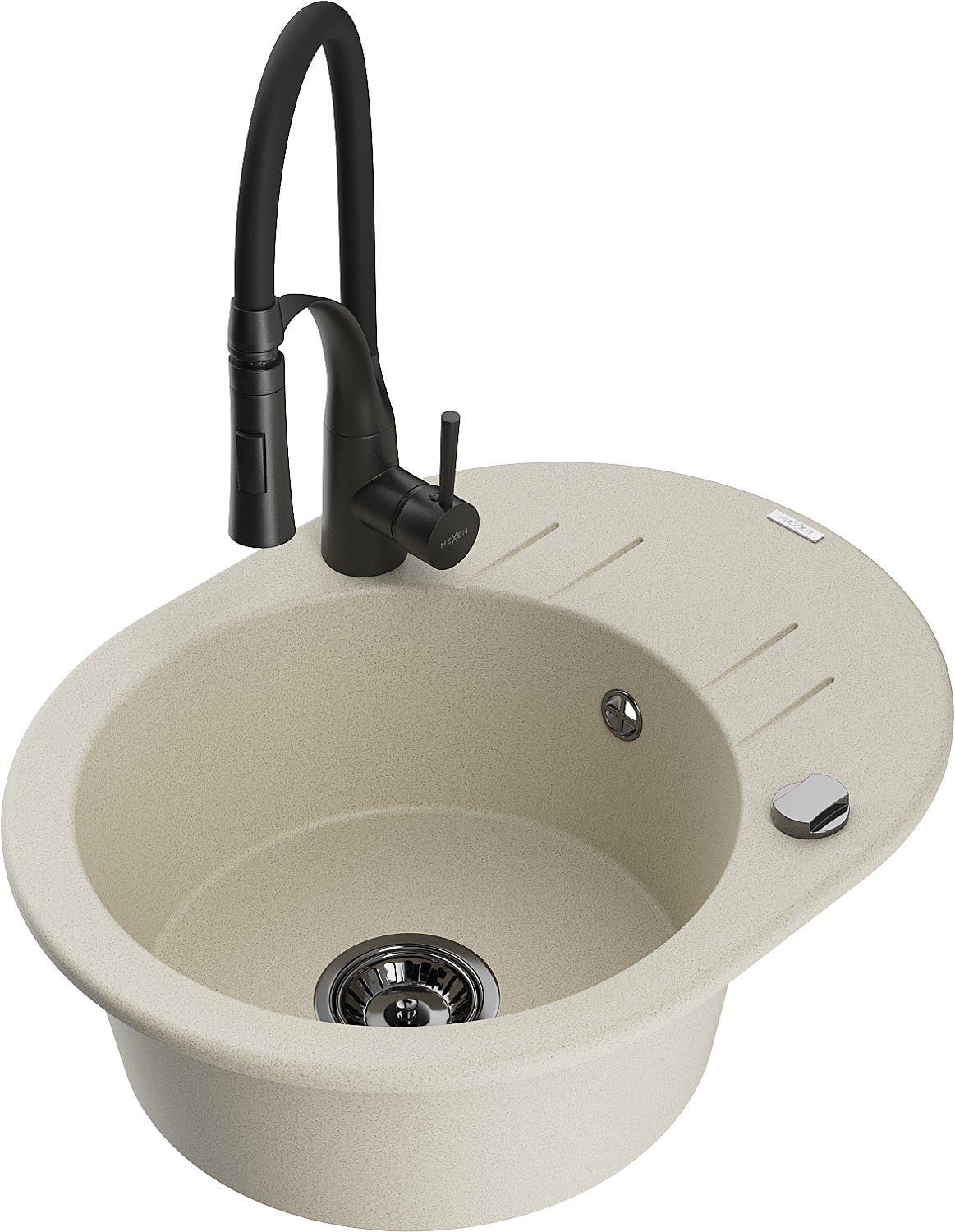 Mexen Kevin granito plautuvė 1 sekcijos su nusausinimo lentynėle ir virtuvės maišytuvu Aster, smėlio spalvos - 6517-69-73450-70?