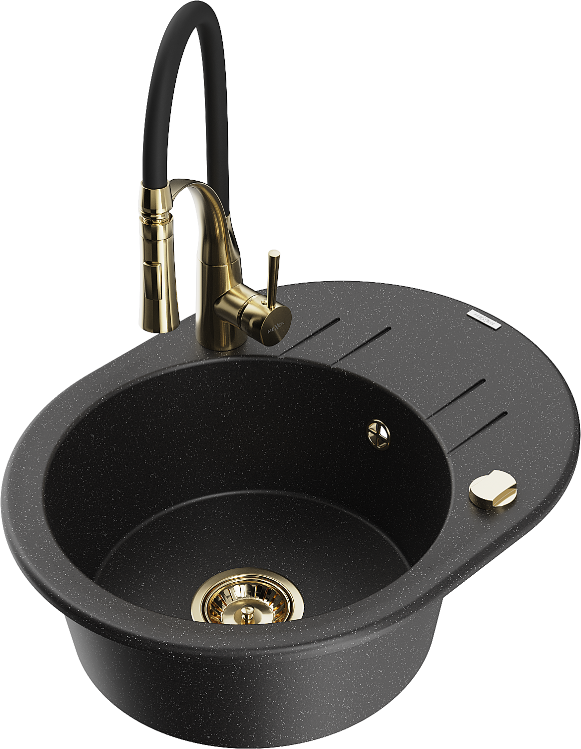 Mexen Kevin granitinis vieno dubens kriauklė su nusausinimo paviršiumi ir Aster virtuviniu čiaupu, juodas/sidabrinis metalikas ?