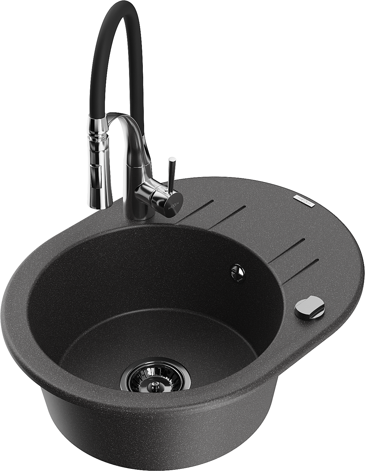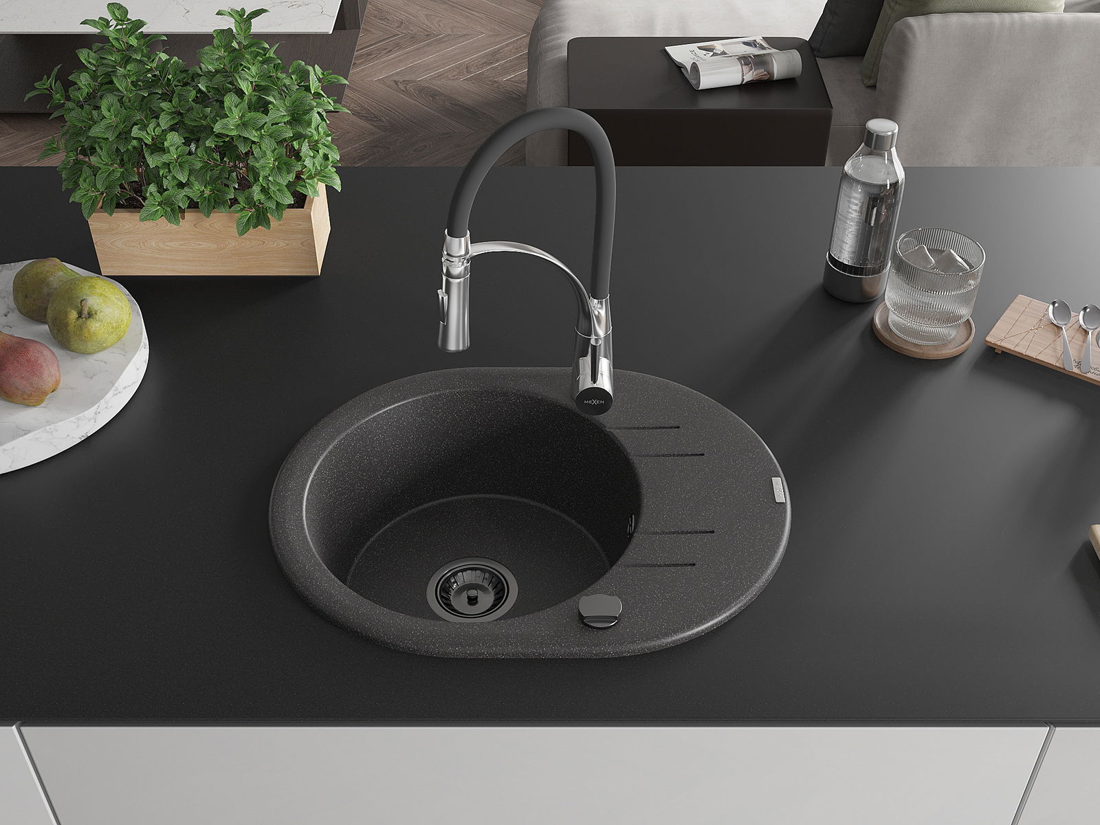 Mexen Kevin granitinis plautuvė su viena kamera ir nusausintoju bei virtuvės maišytuvu Aster, juodas dėmėtas - 6517-76-73450-07?