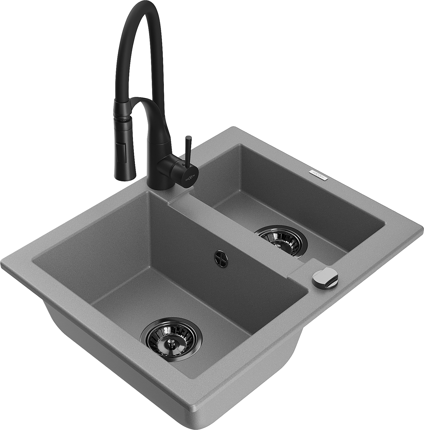 Mexen Carlos granitinė 1,5 skylių kriauklė su Aster virtuviniu maišytuvu, pilka - 6518-71-73450-70-B