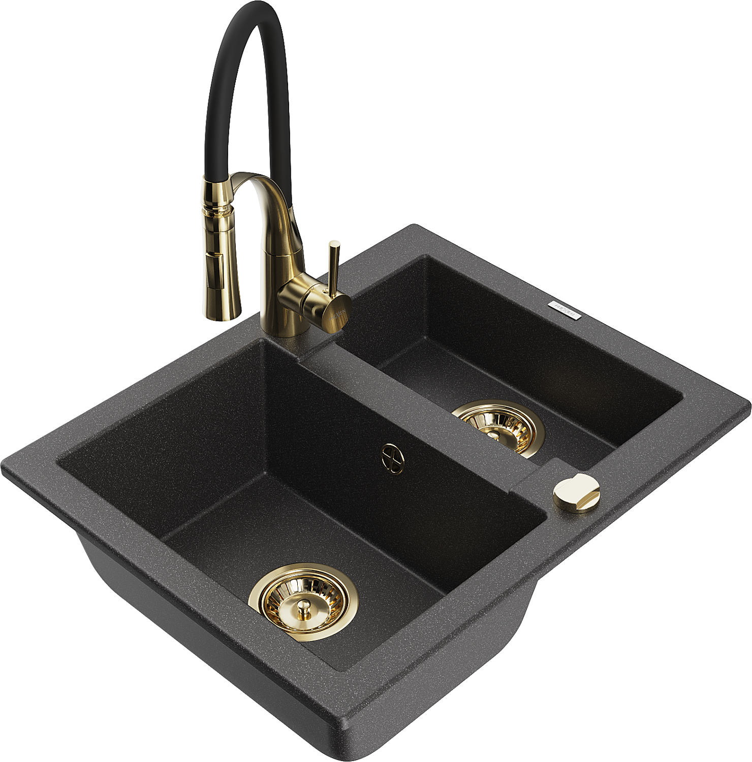 Mexen Carlos granito plautuvė 1,5 kameros su virtuviniu maišytuvu Aster, juoda su taškeliais - 6518-76-73450-57-G