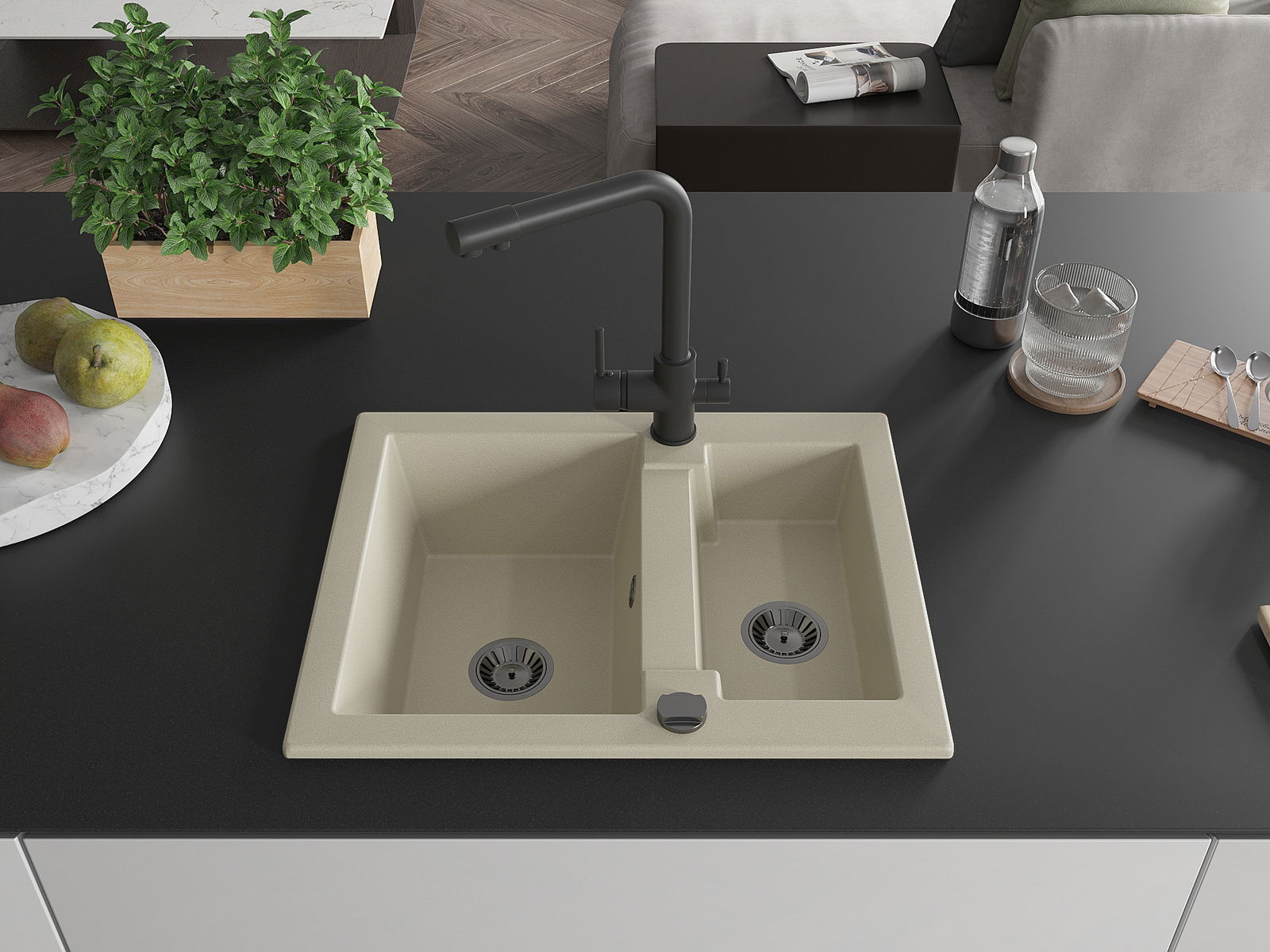 Kriauklės paviršius yra atsparūs dėmėms ir spalvos pasikeitimui, dėl kurio lengva valyti ir ilgą laiką išlaikyti savo spalvą. Estetinis ir praktiškai papildantis kiekvieną virtuvę.