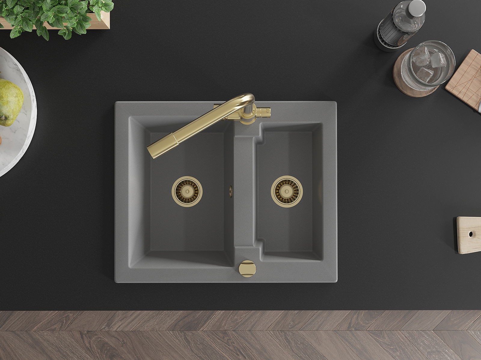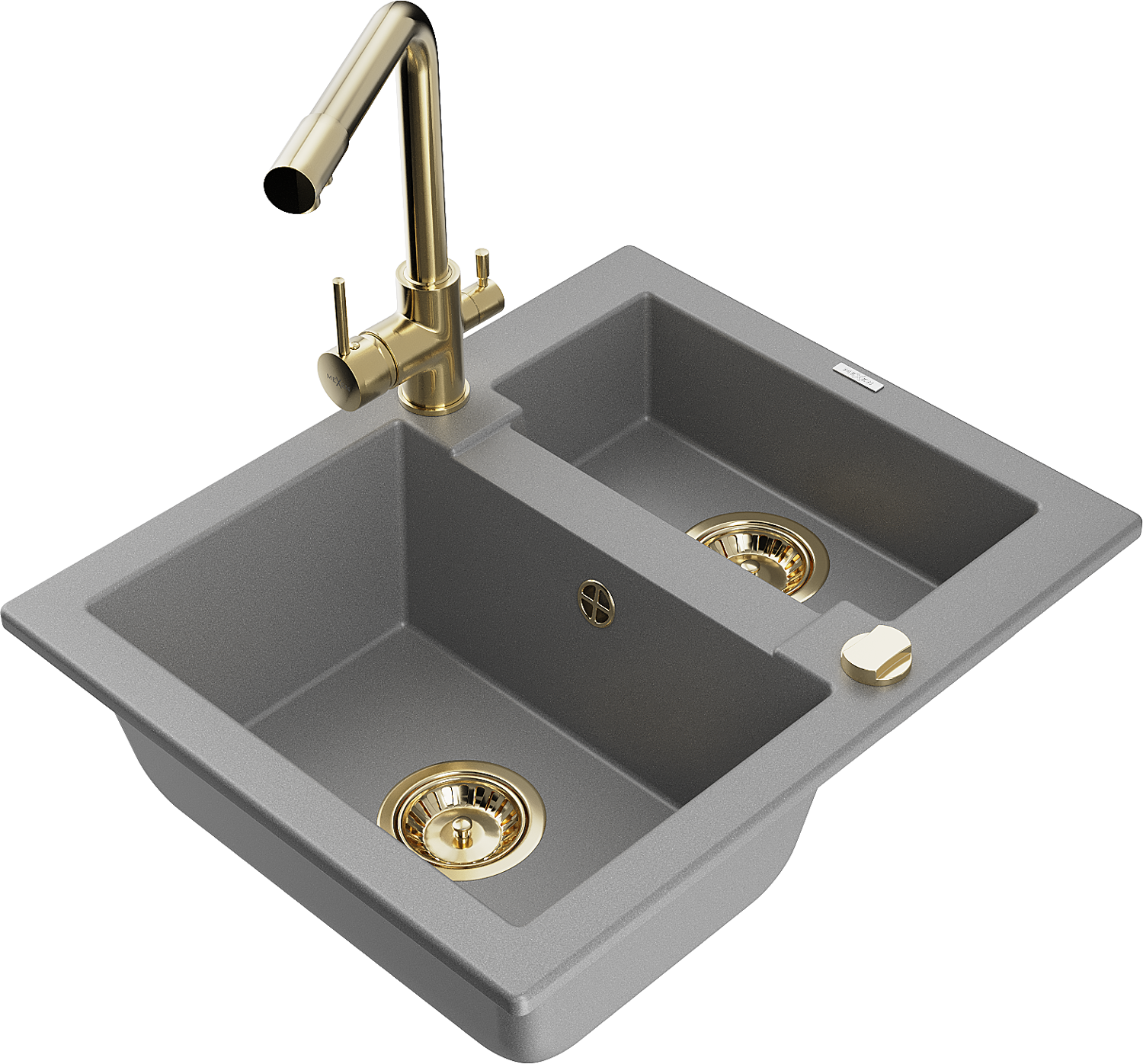 Mexen Carlos granitinis 1,5 sekcijų plautuvas su Duero virtuvės maišytuvu, pilkas - 6518-71-671600-50