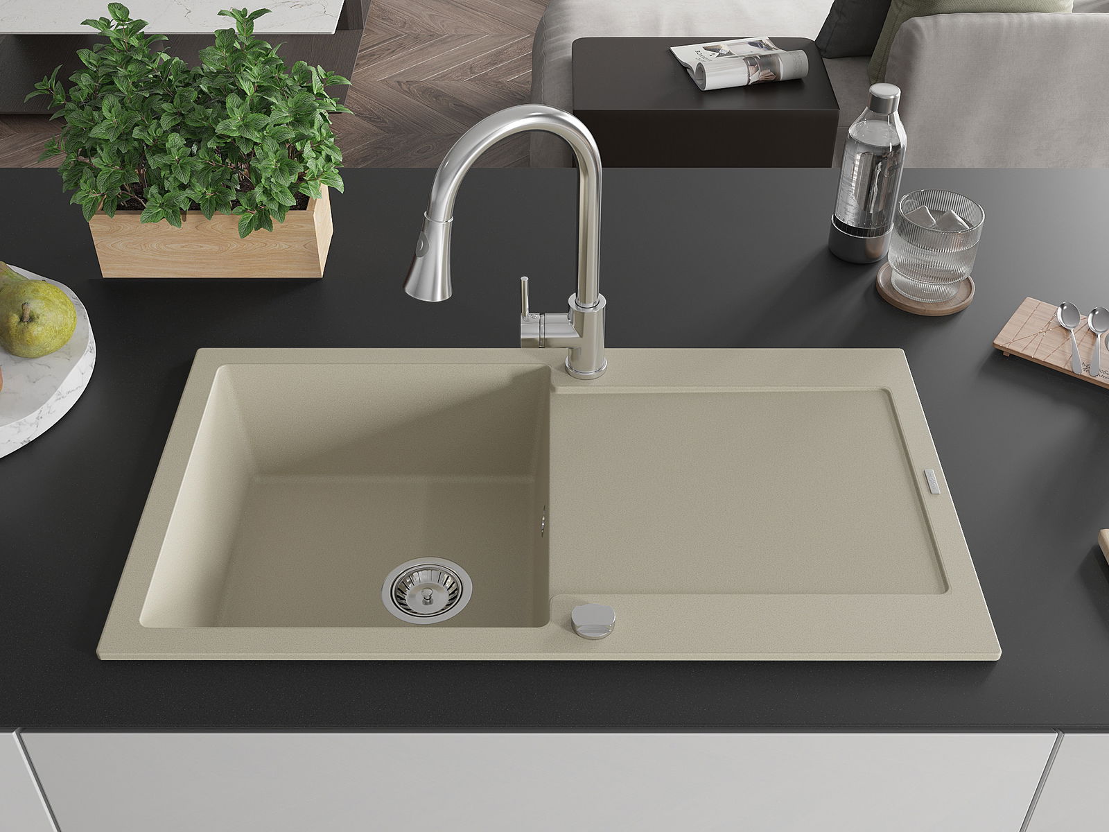 Kriauklės paviršius yra atsparūs dėmėms ir spalvos pasikeitimui, dėl kurio lengva valyti ir ilgą laiką išlaikyti savo spalvą. Estetinis ir praktiškai papildantis kiekvieną virtuvę.