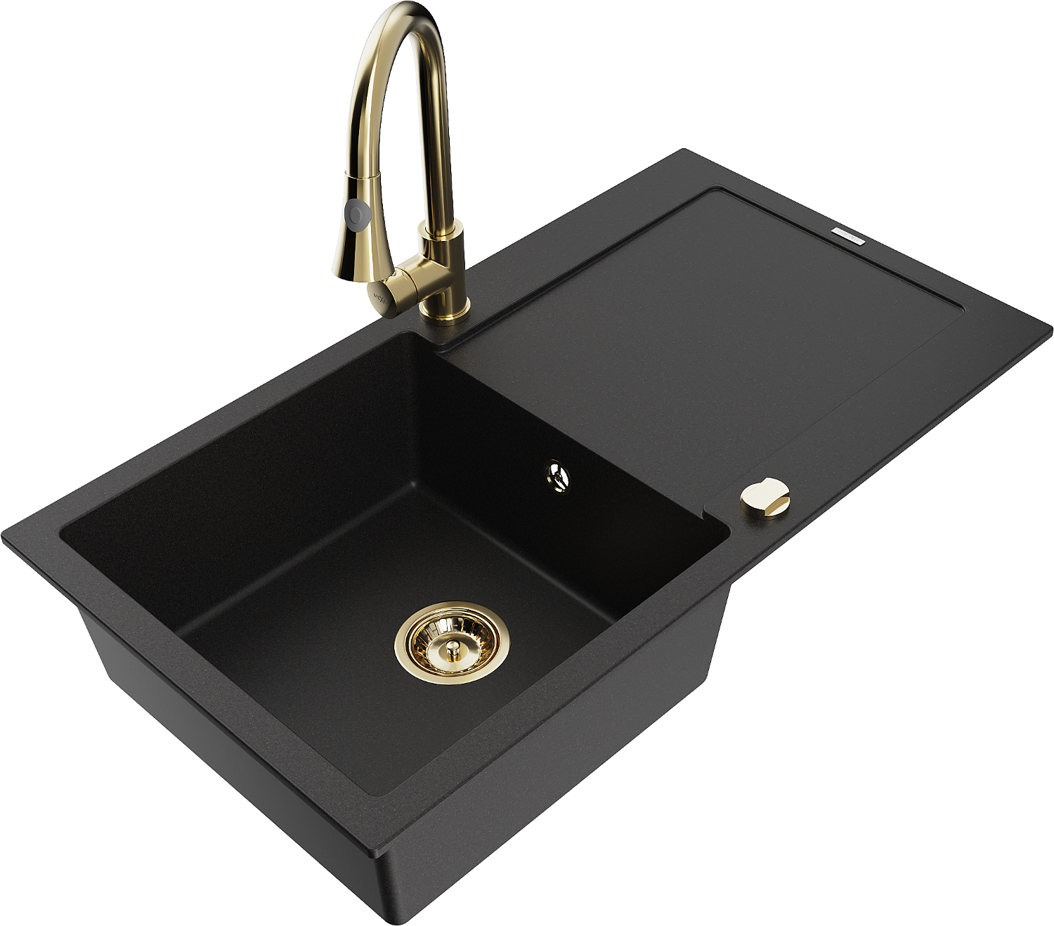 Mexen Leo viena komora granitinė plautuvė su drenažu ir virtuvės maišytuvu Elia, juoda - 6501-77-670101-50