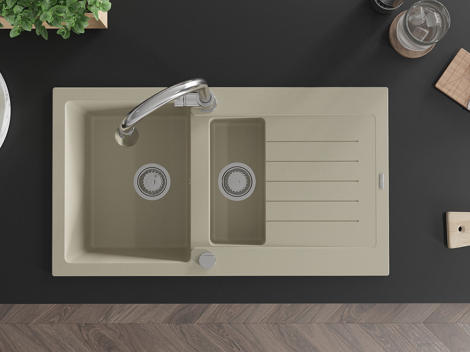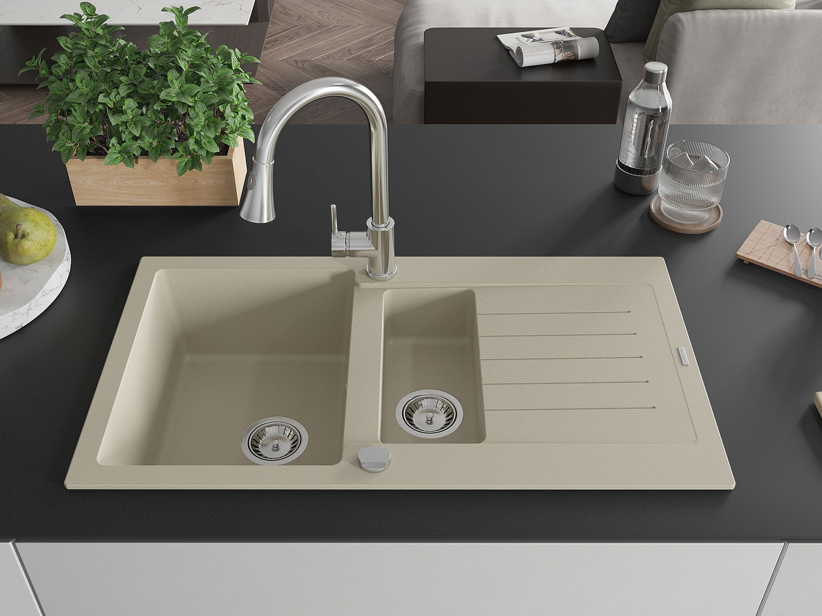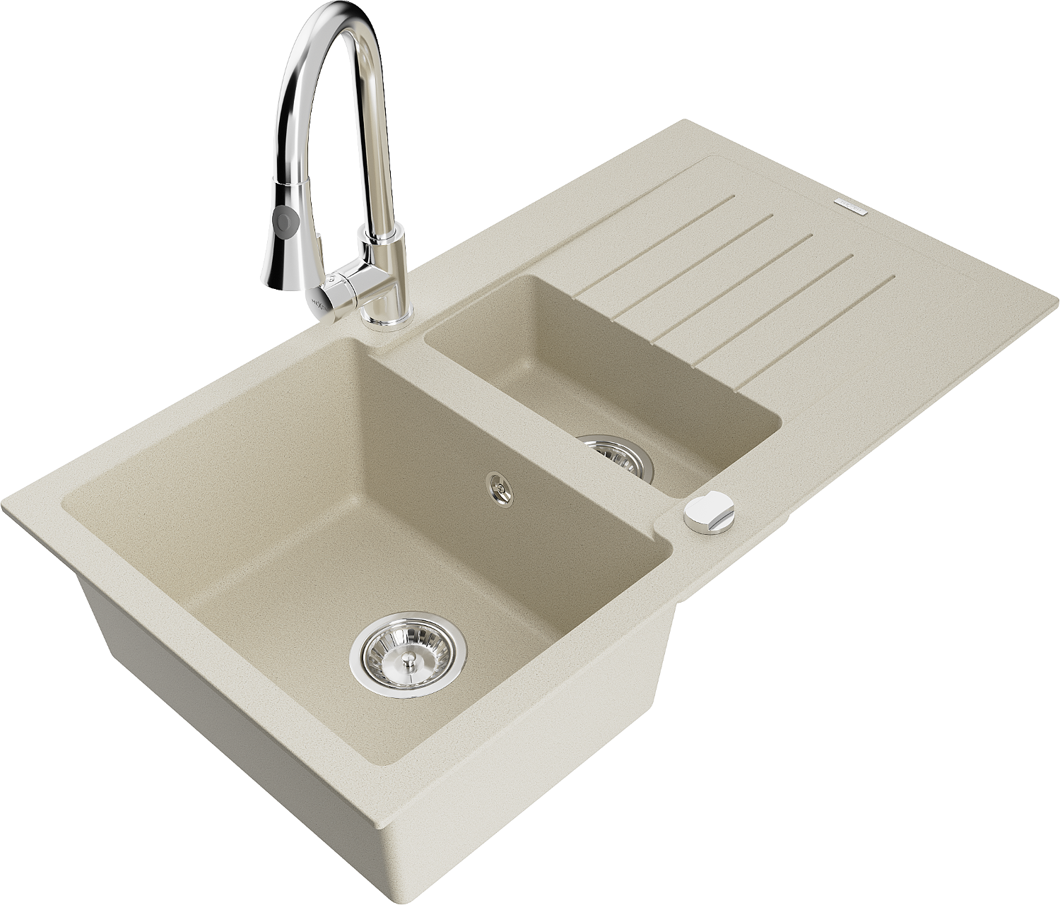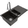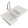 Mexen Matias granito plautuvė 1,5 skyrių su nutekamu ir virtuvine čiaupeliu Elia, balta - 6502-69-670101-00
