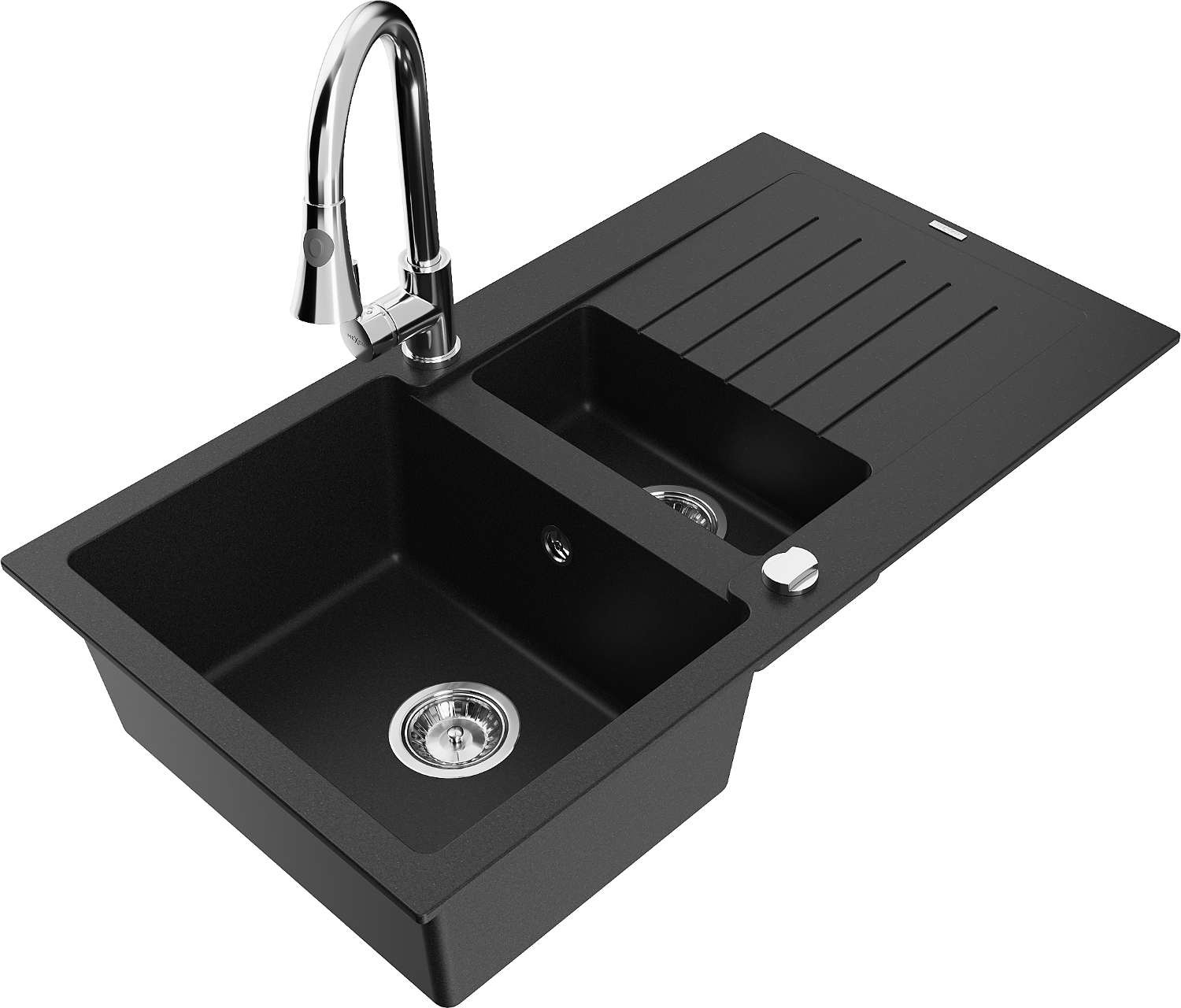 Mexen Matias granitinė 1,5 kamerų plautuvė su nusausintuvu ir virtuviniu maišytuvu Elia, juoda - 6502-77-670101-00
