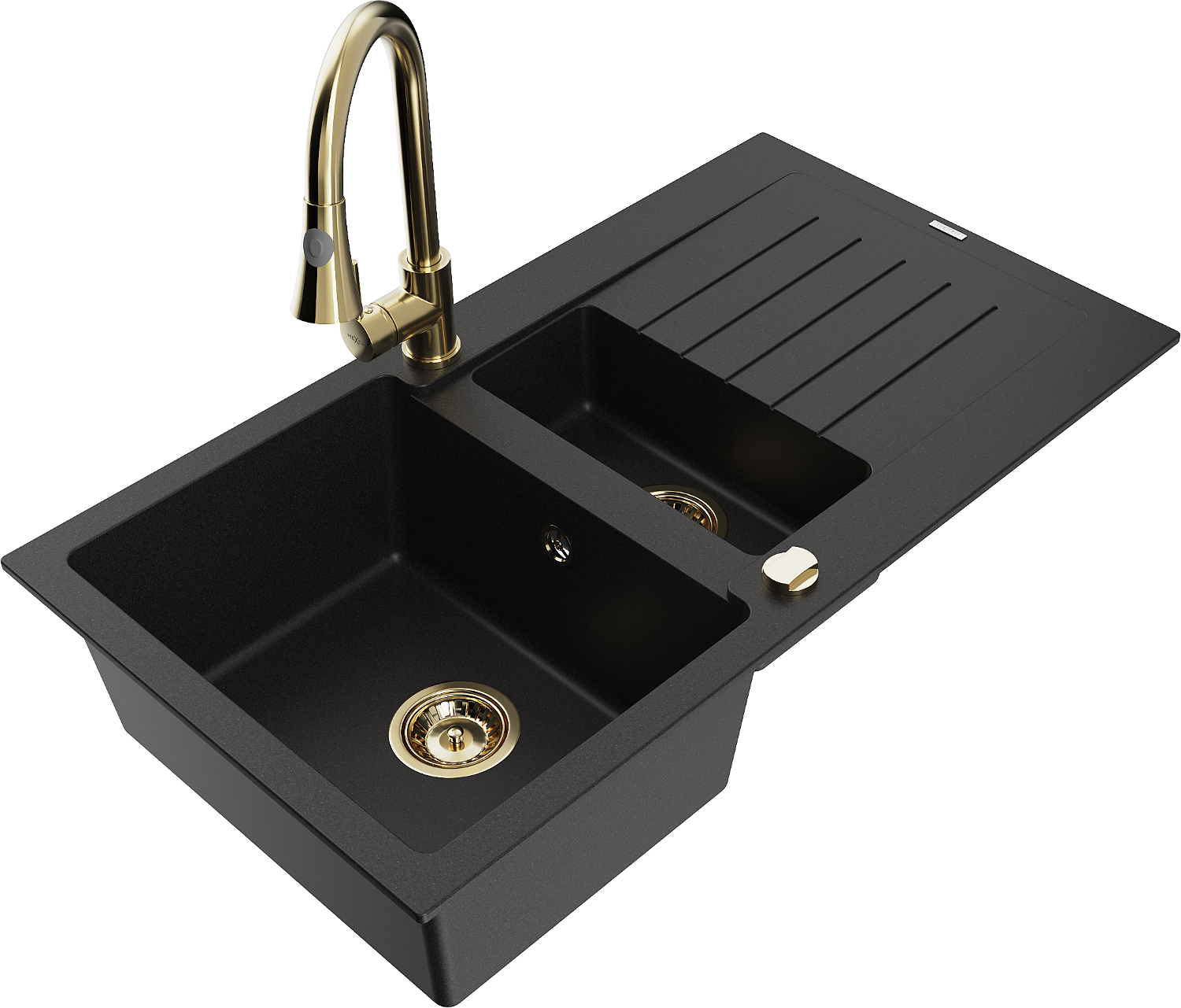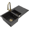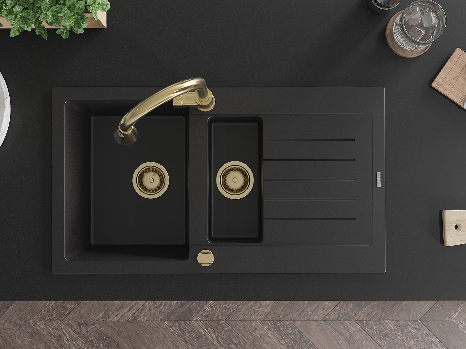 Mexen Matias granitinė 1,5 skyrių plautuvė su nutekėjimo ir virtuviniu maišytuvu Elia, juoda - 6502-77-670101-50