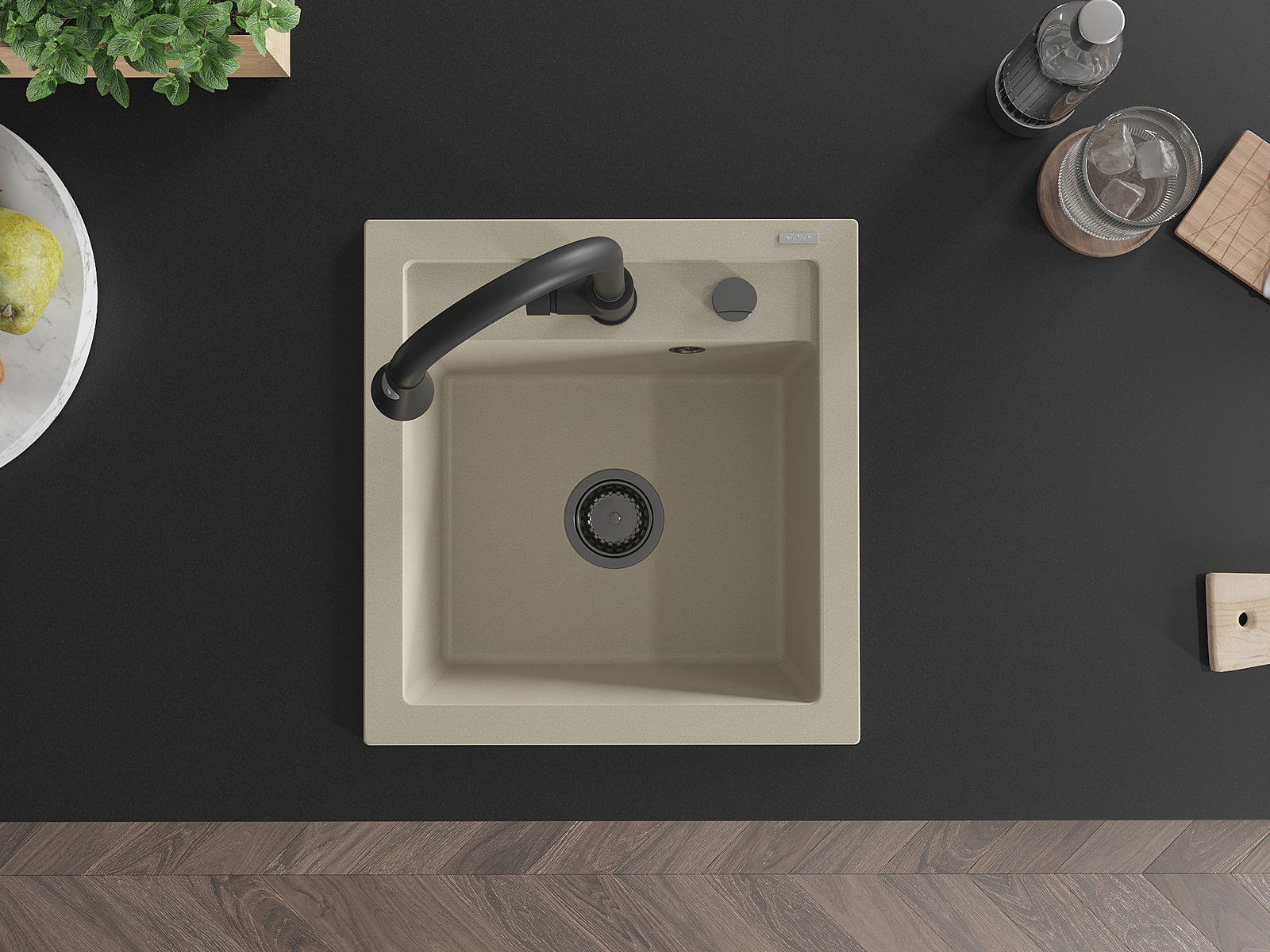 Mexen Vito vienos komoros granito virtuvės kriauklė su Elia virtuviniu maišytuvu, smėlio spalvos - 6503-69-670101-70